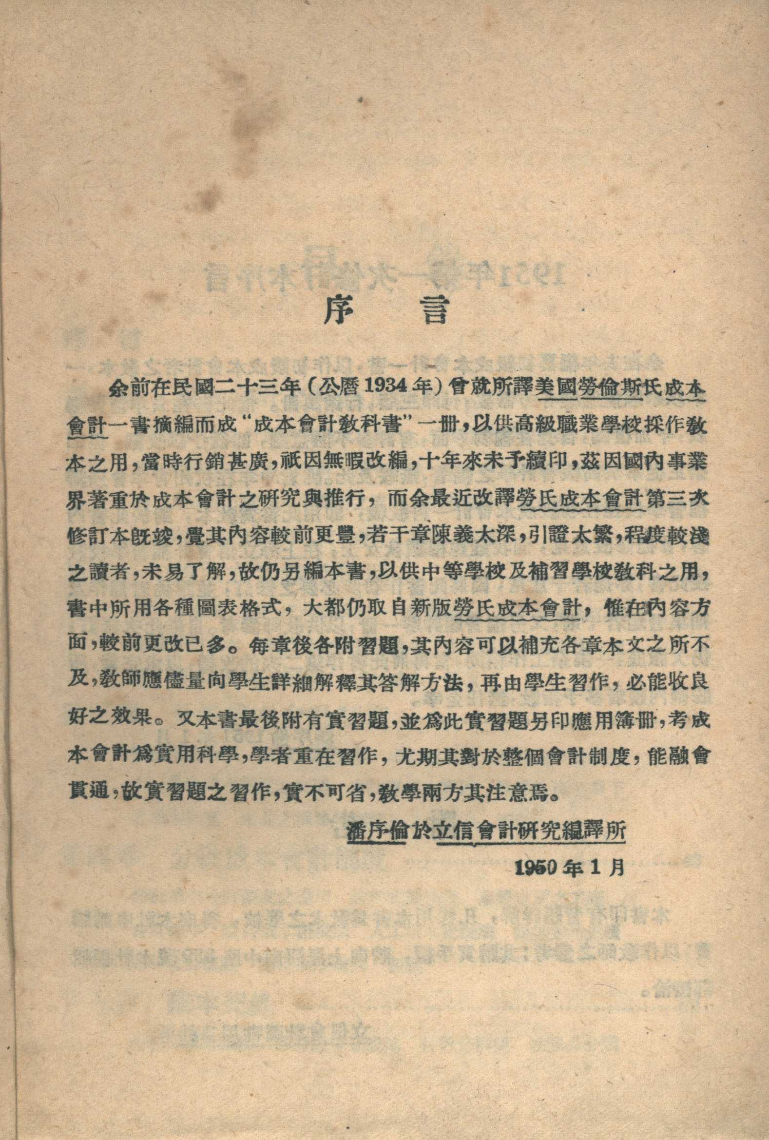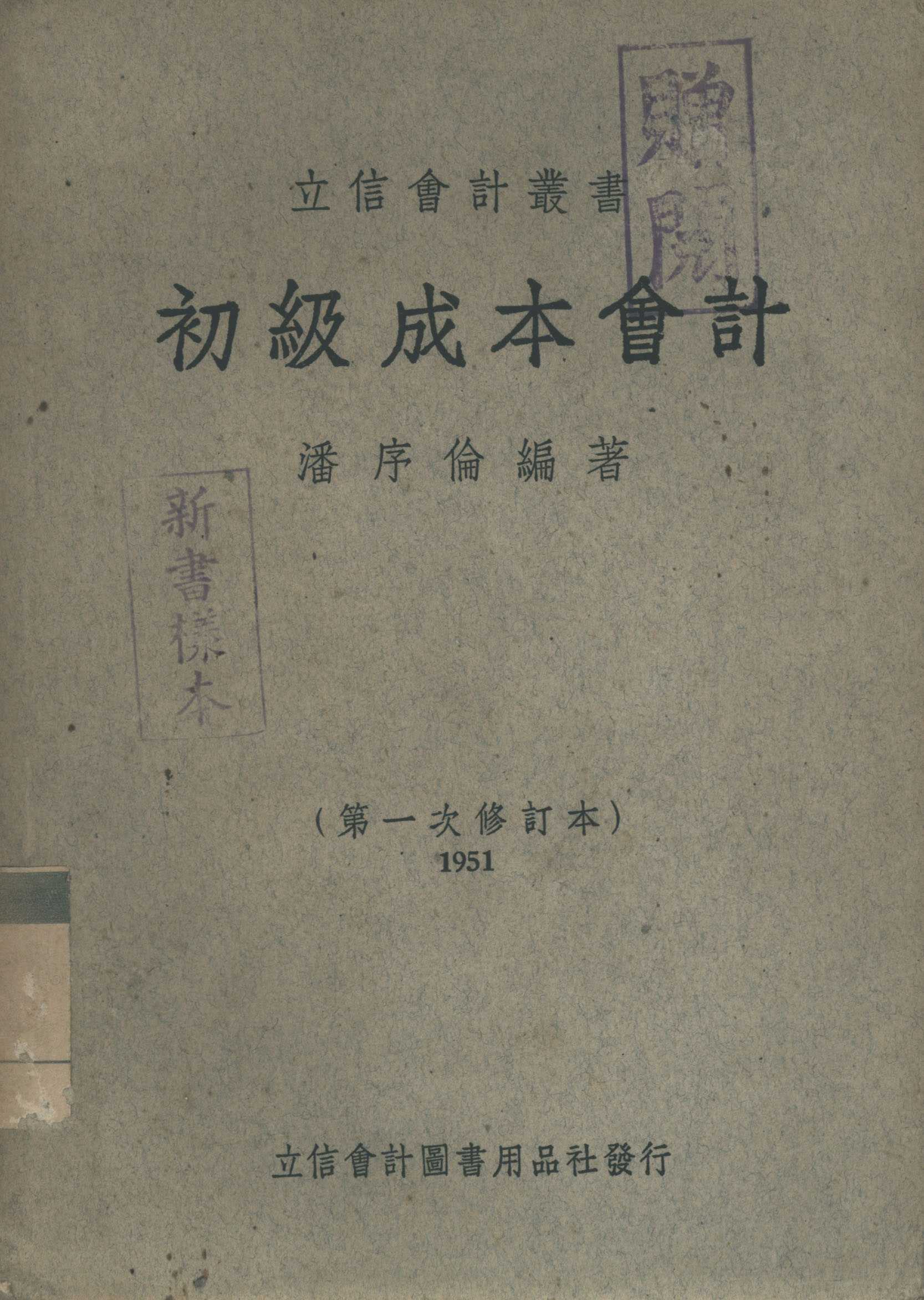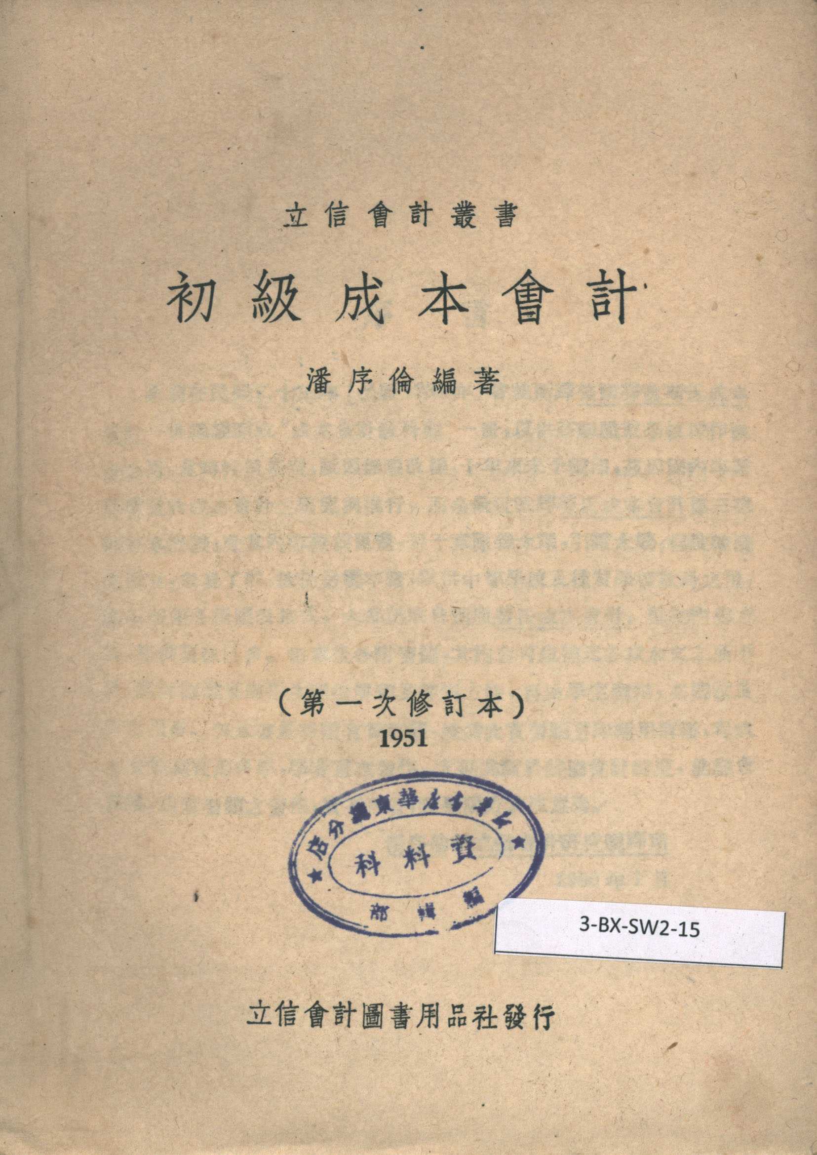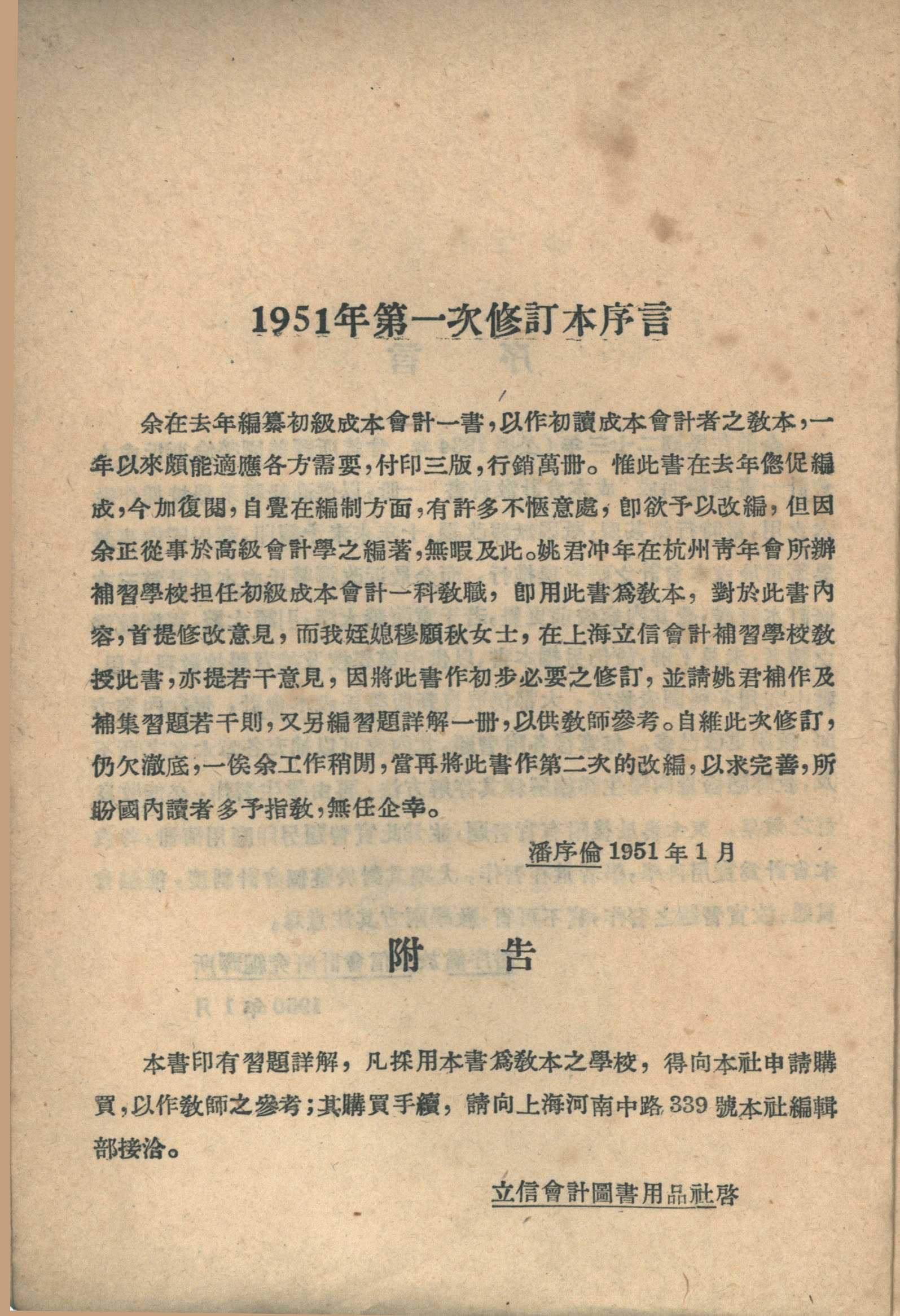 《初级成本会计》(第一次修订本)1951 潘序伦编著 立信会计丛书 立信会计图书用品社发行