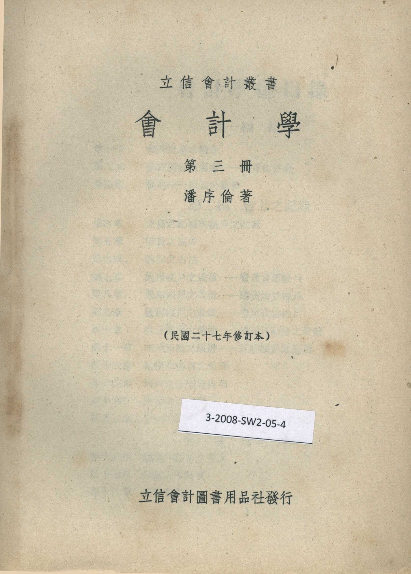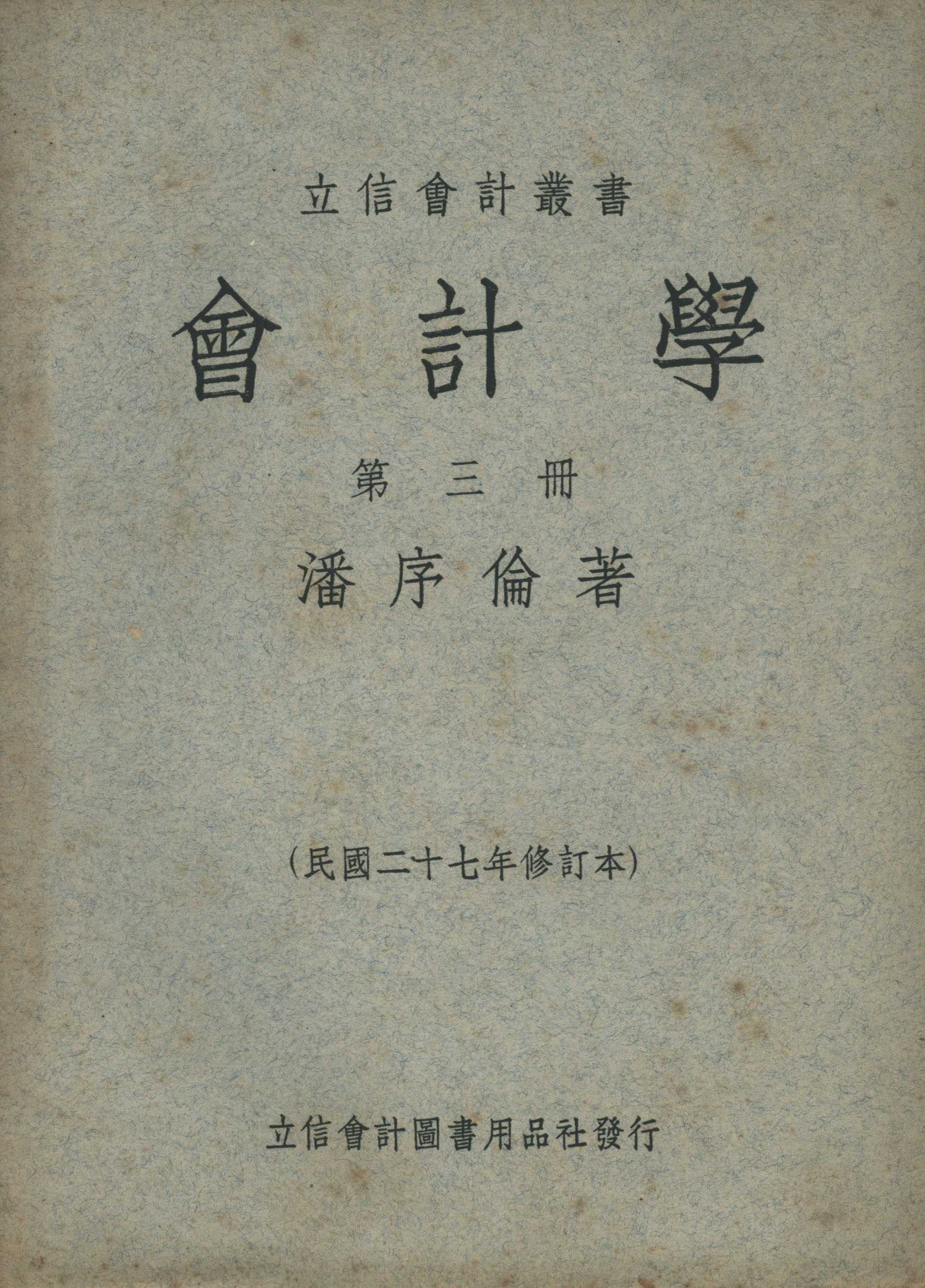 《会计学》第三册 潘序伦著 商务印书馆发行(民国二十七年即1938年修订本)