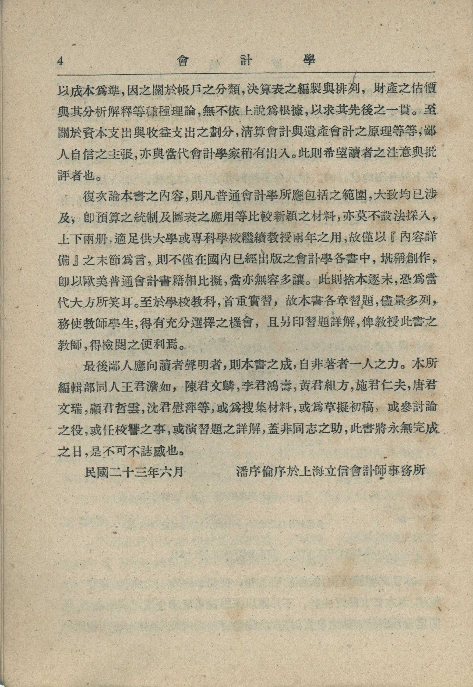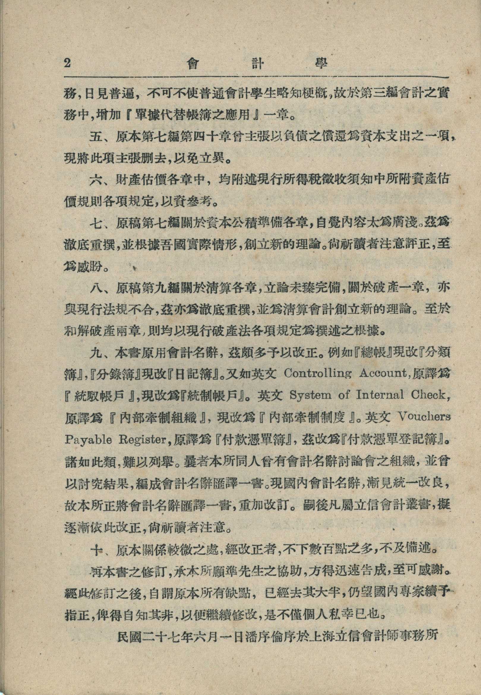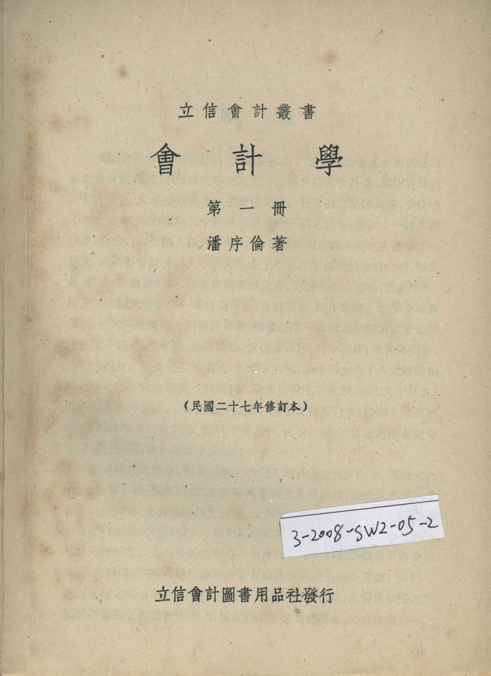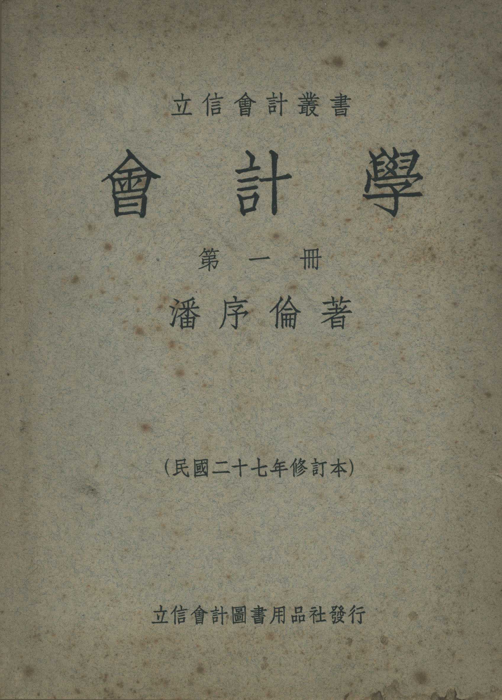 《会计学》第一册 潘序伦著 商务印书馆发行(民国二十七年即1938年修订本)