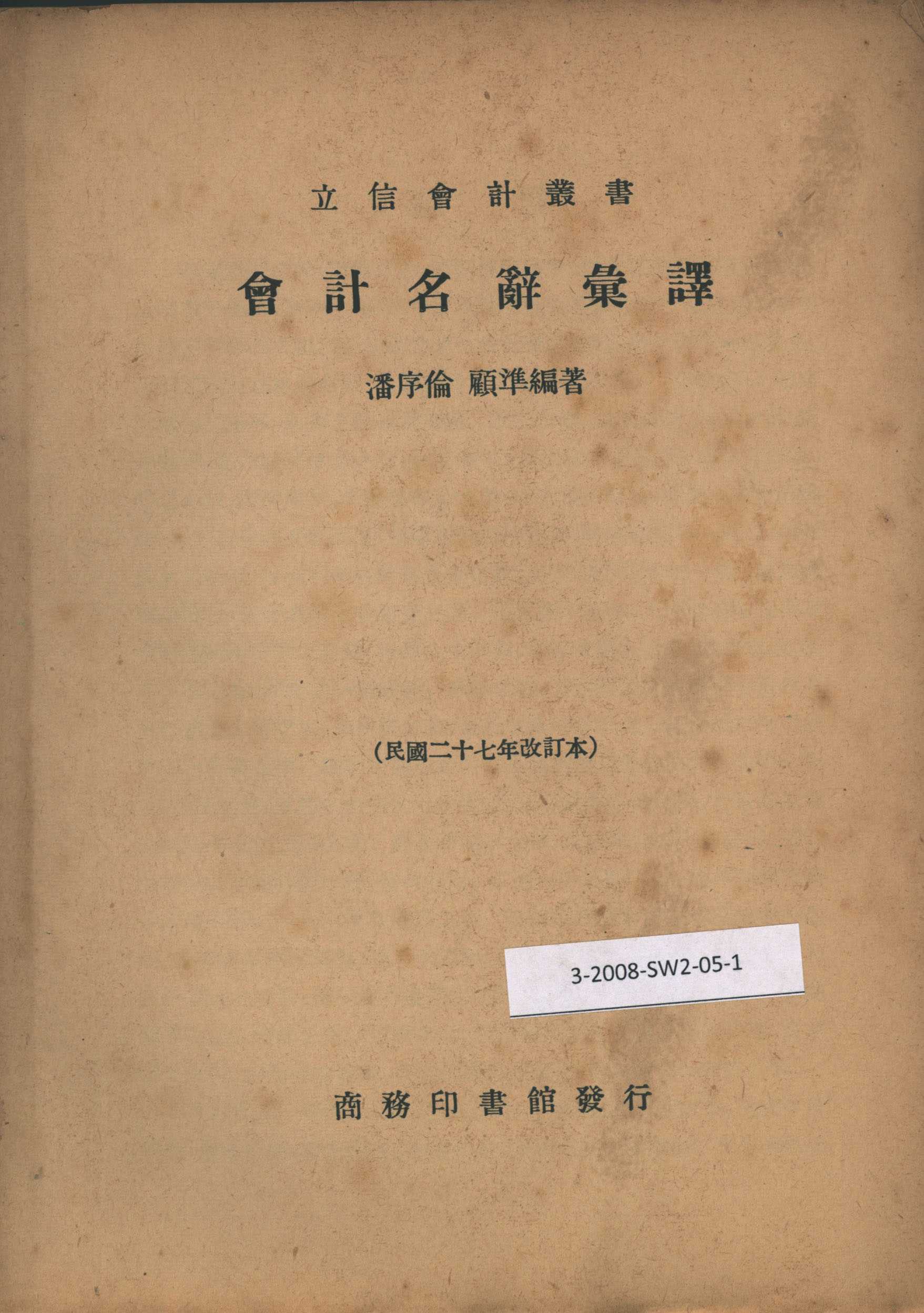 《会计名词汇译》一本 潘序伦 顾准编著 商务印书馆发行(民国二十七年即1938年改订本)