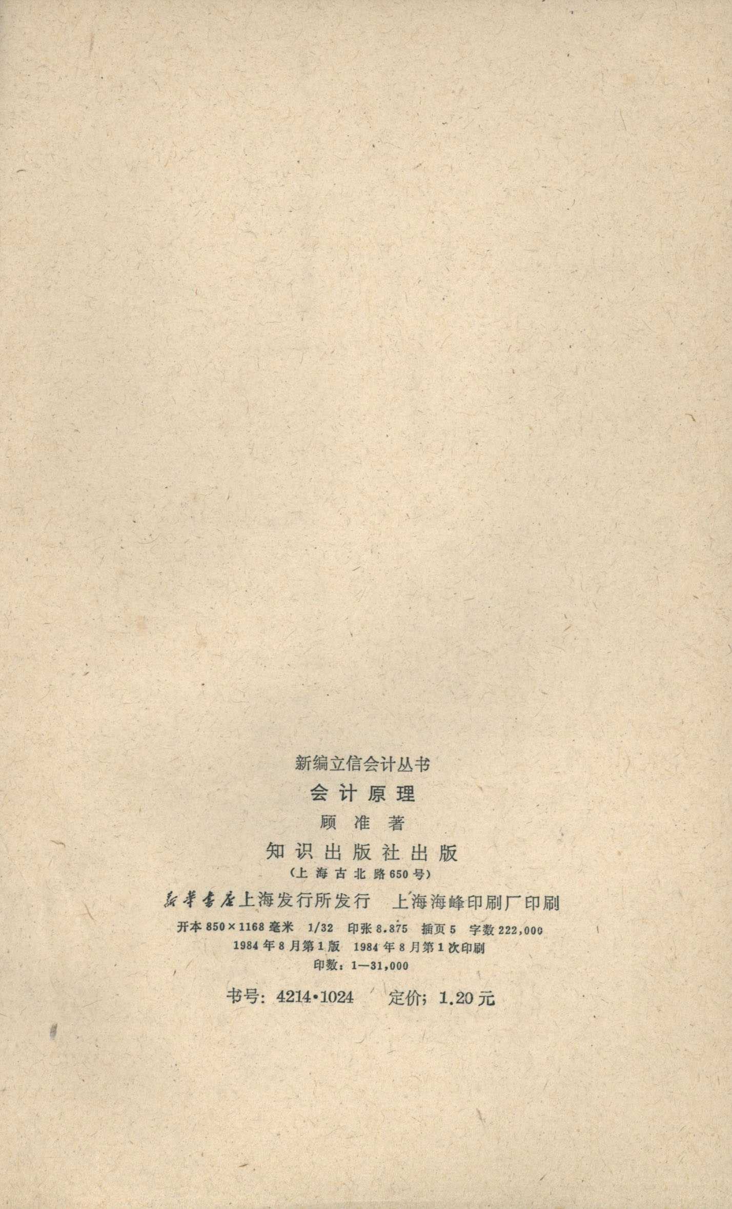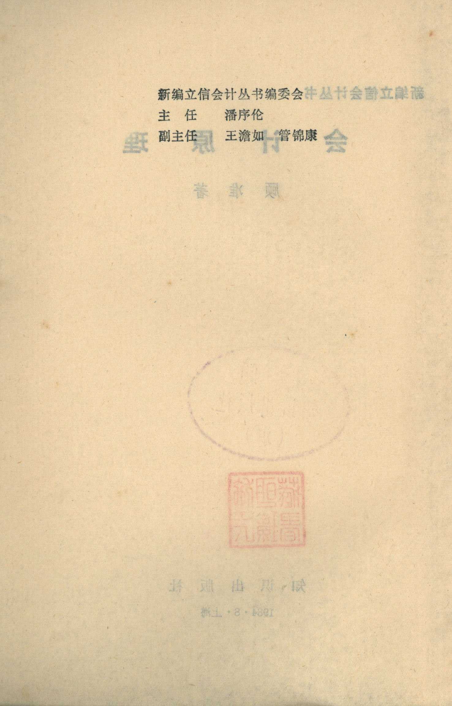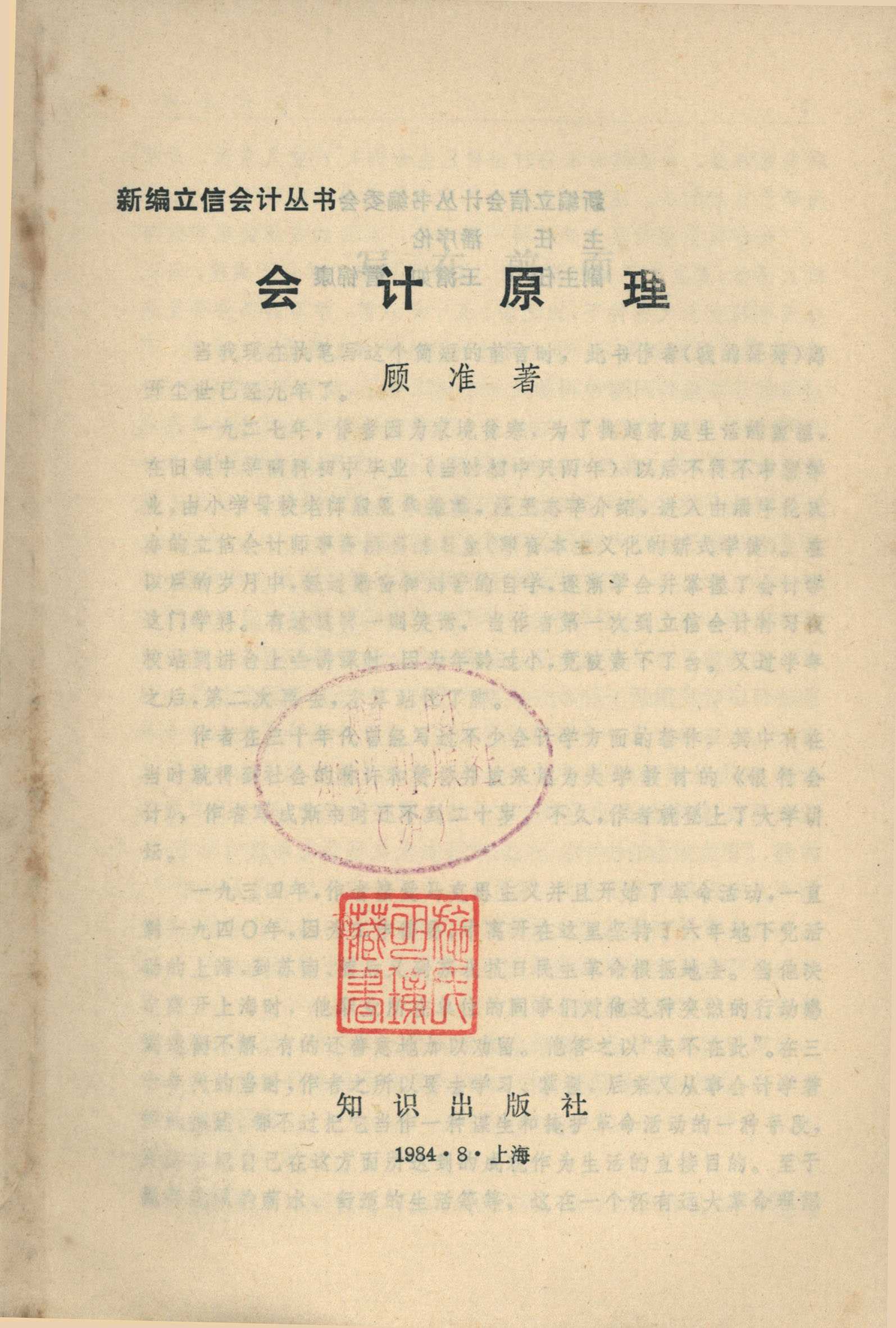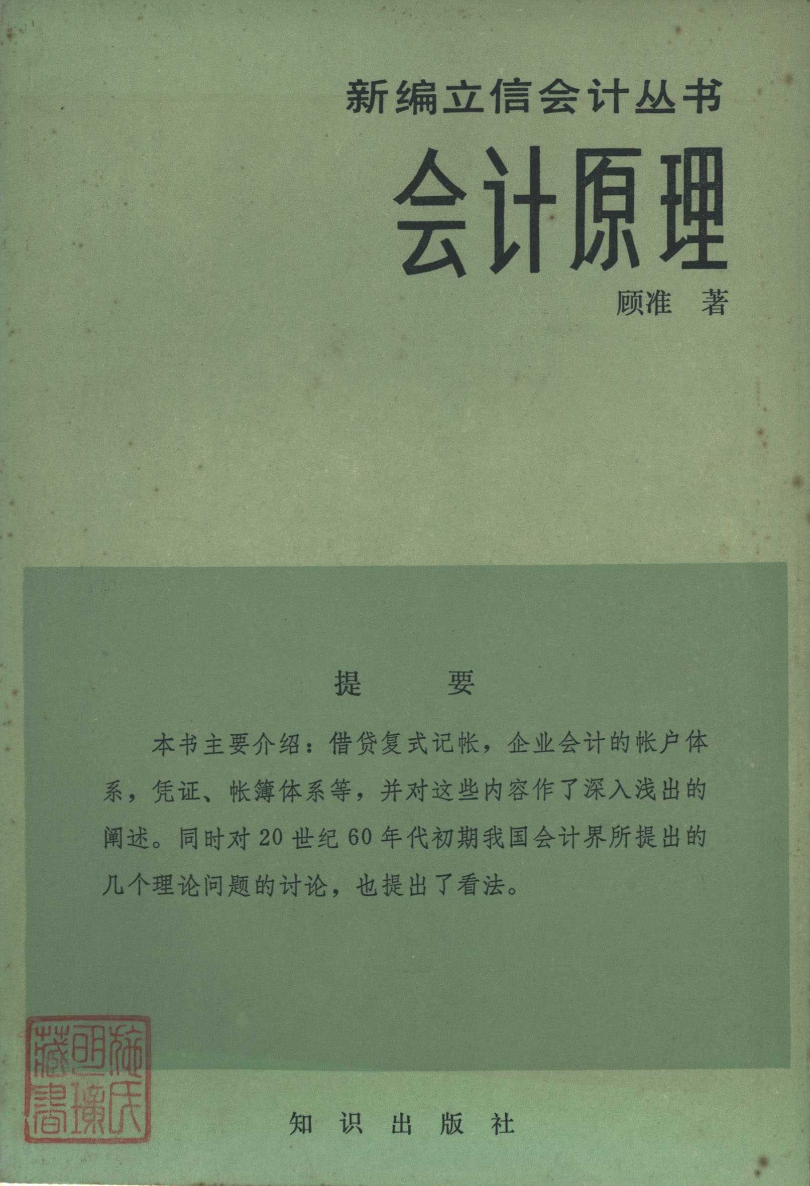 新编立信会计丛书 会计原理 知识出版社 顾准著 主任潘序伦 副主任王澹如 管锦康