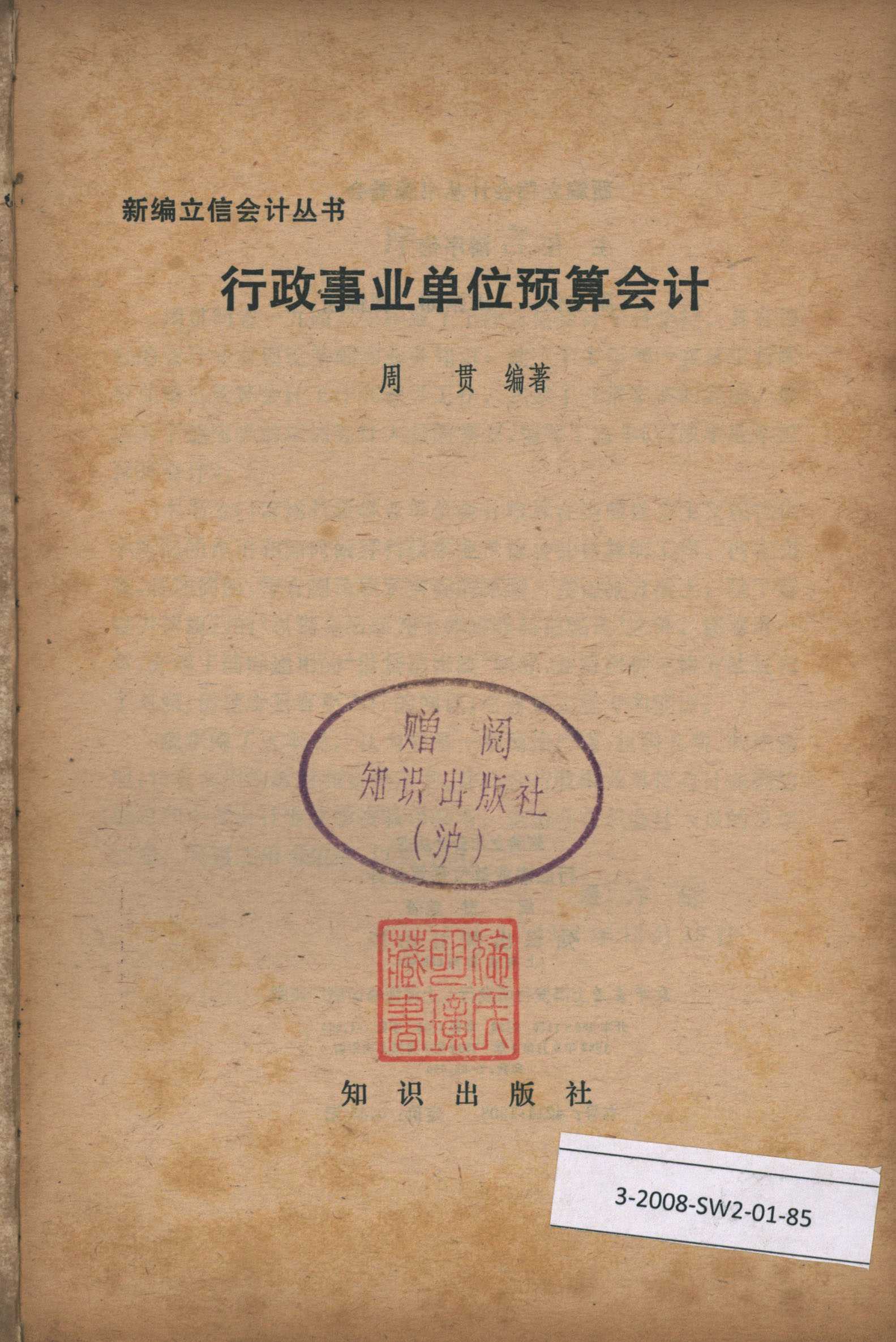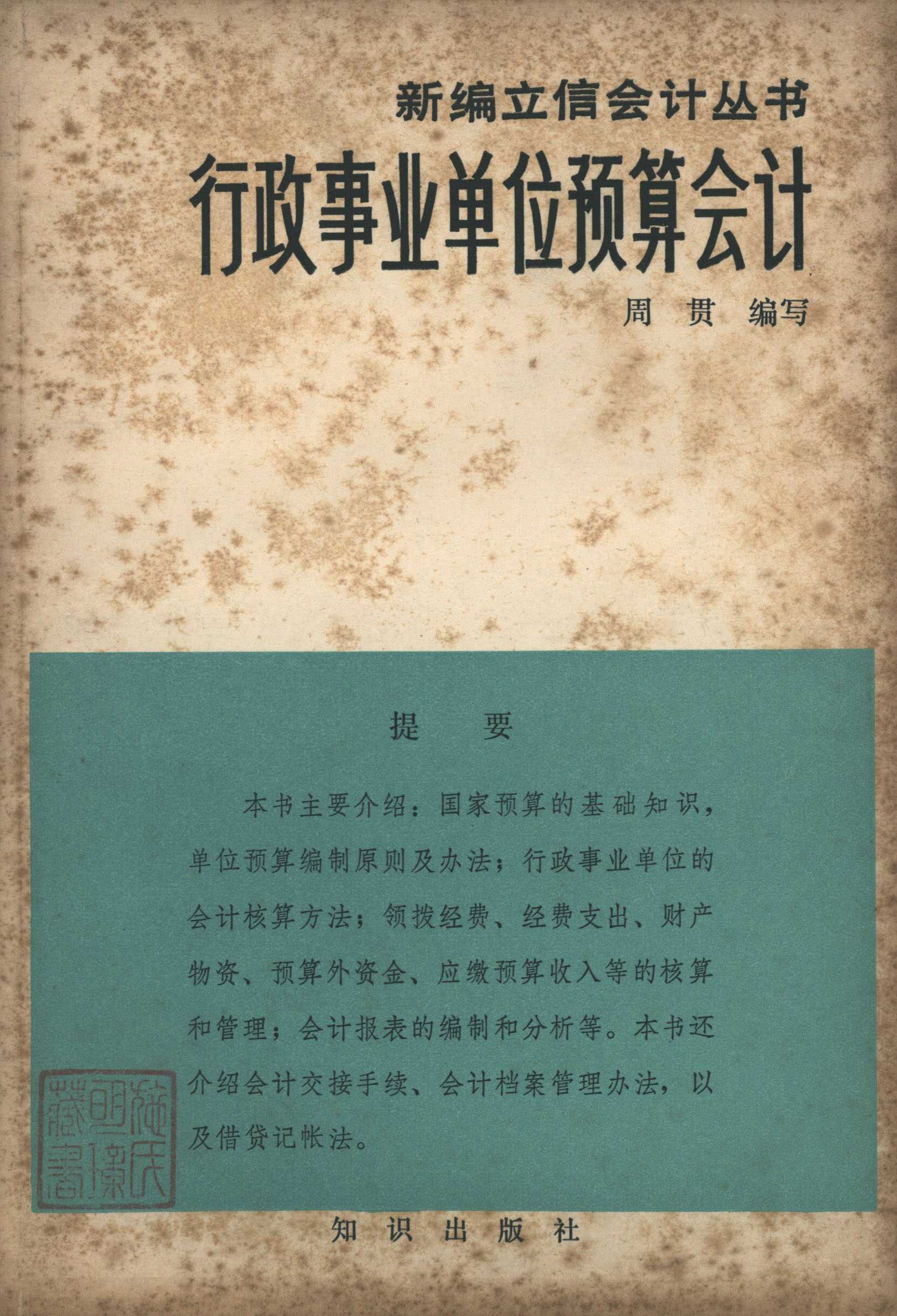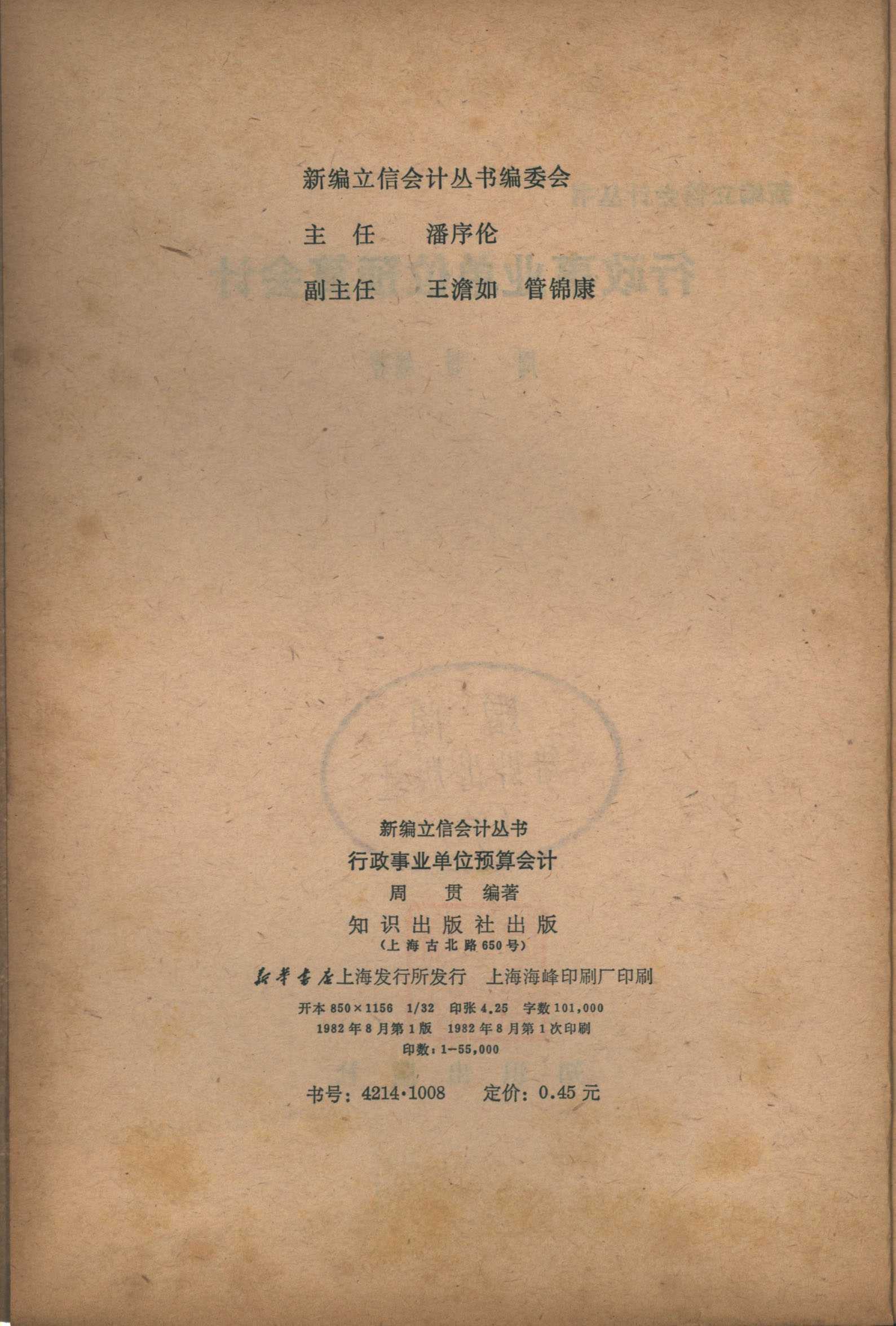 新编立信会计丛书 行政事业单位预算会计 知识出版社 周贯编写 主任潘序伦 副主任王澹如 管锦康2本