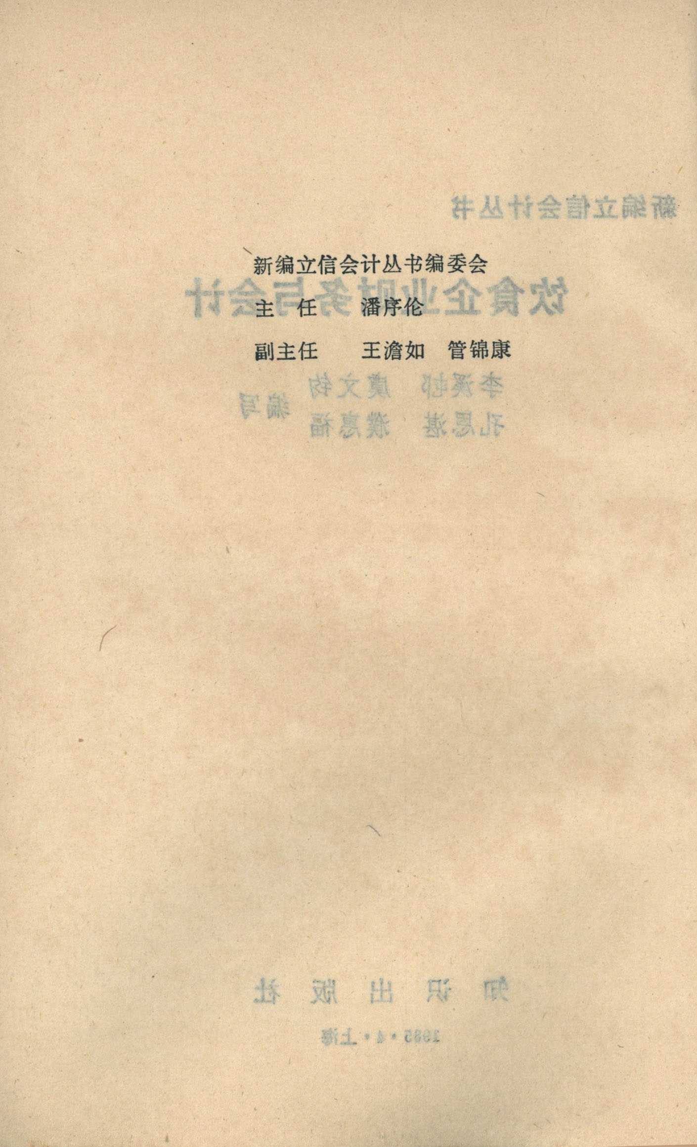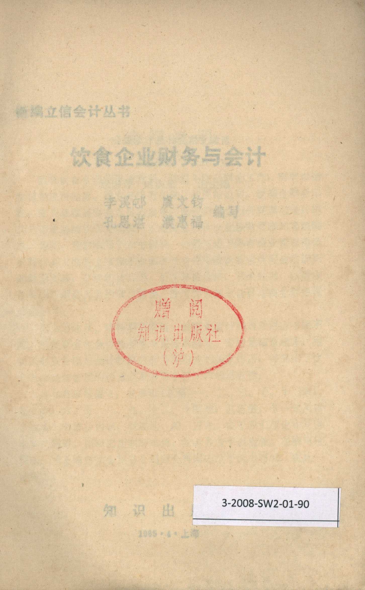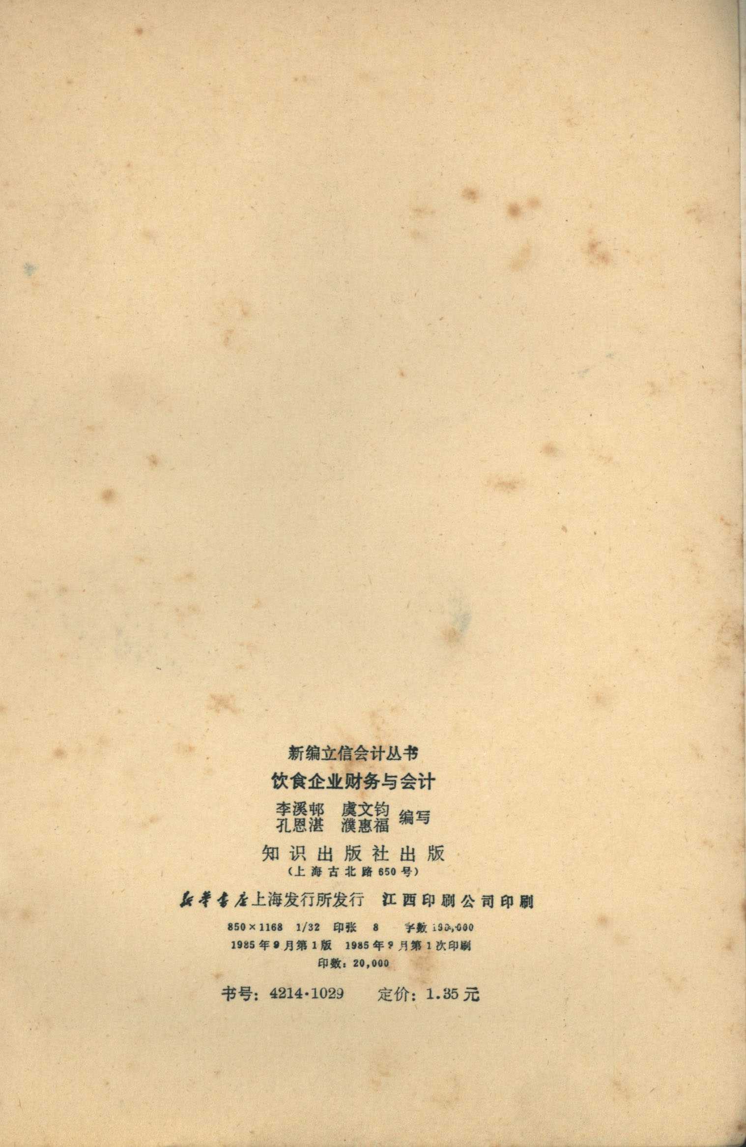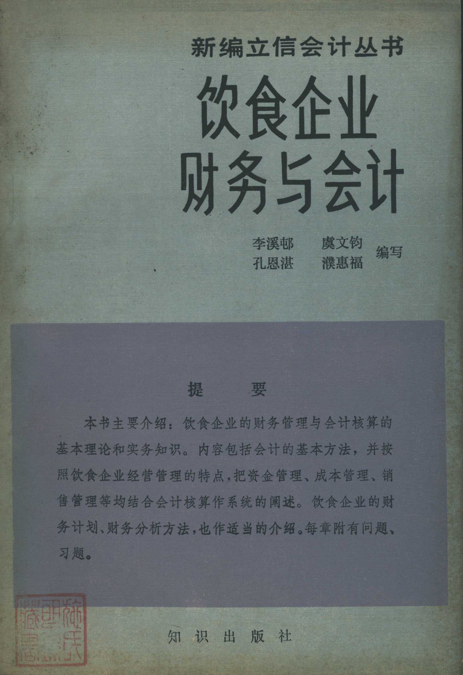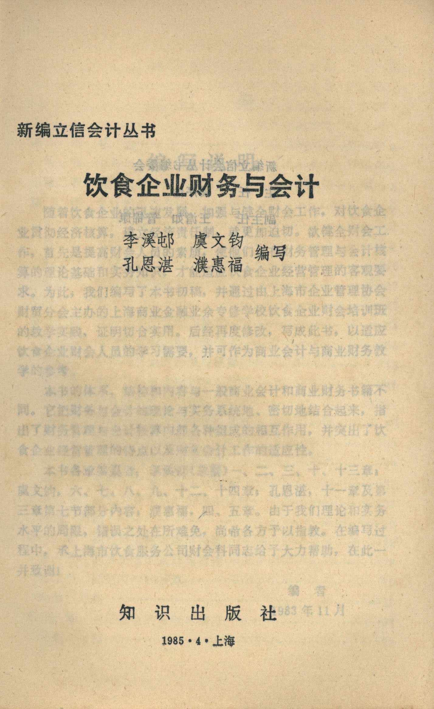 新编立信会计丛书 饮食企业财务与会计 知识出版社 李溪邨 虞文钧 孔恩湛 濮惠福编写 主任潘序伦 副主任王澹如 管锦康