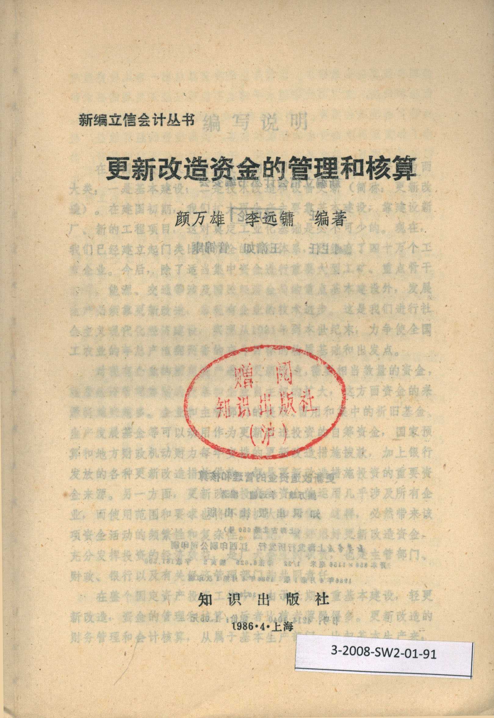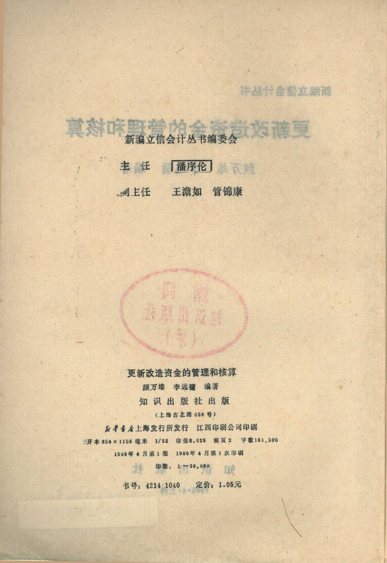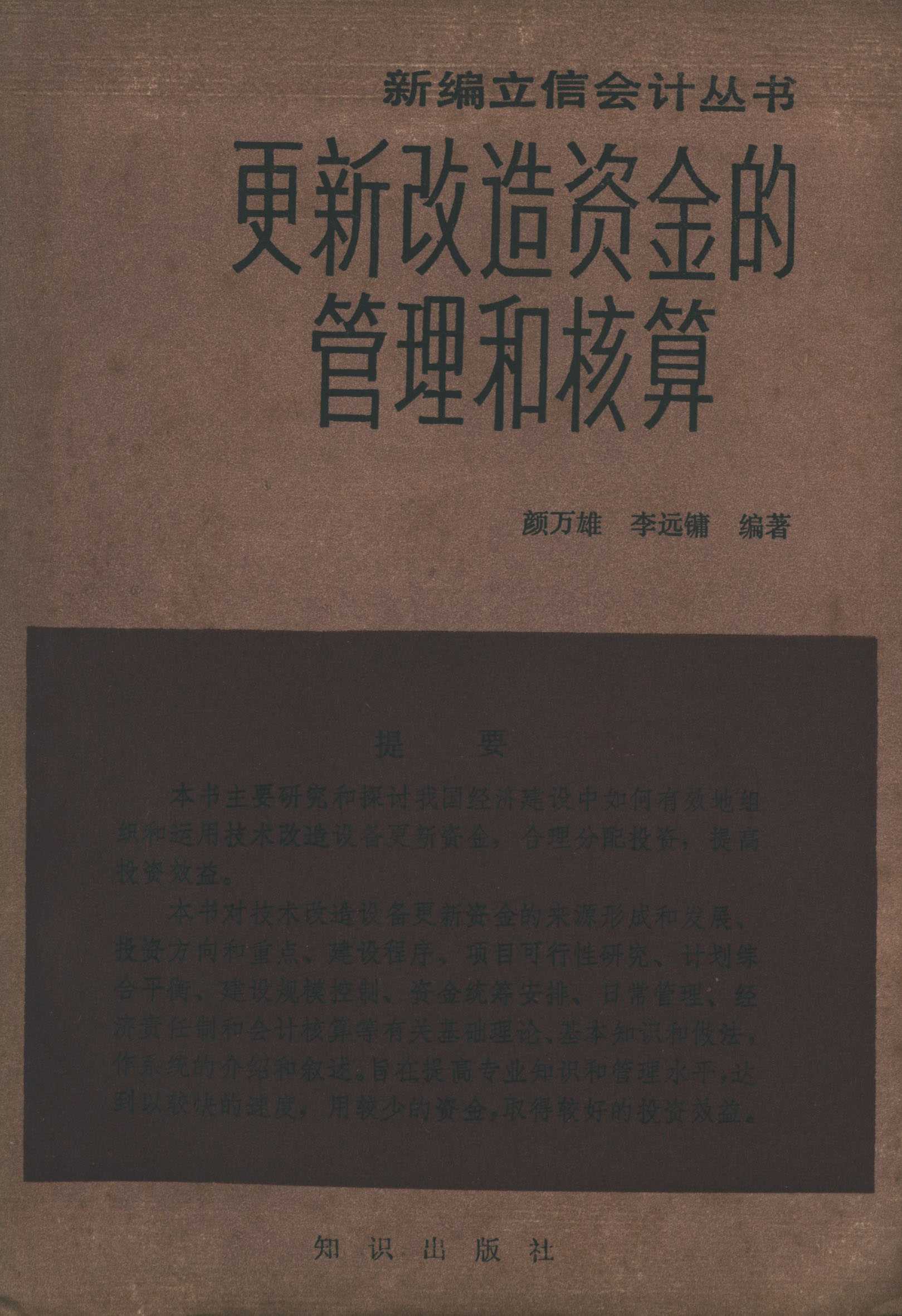 新编立信会计丛书 更新改造资金的管理和核算 知识出版社 颜万雄 李远镛编著 主任潘序伦 副主任王澹如 管锦康