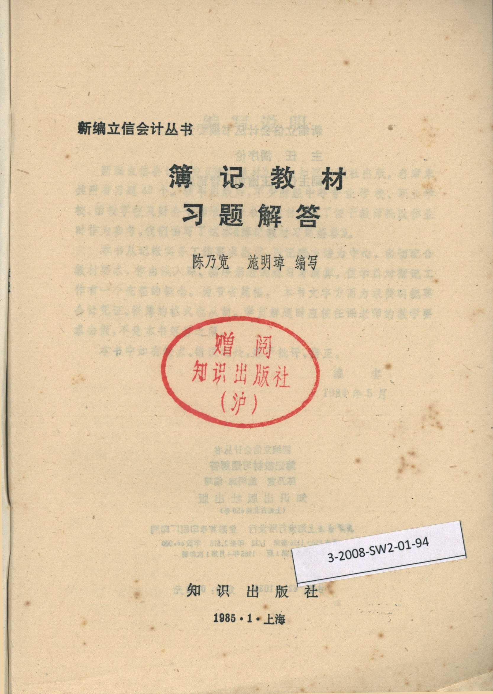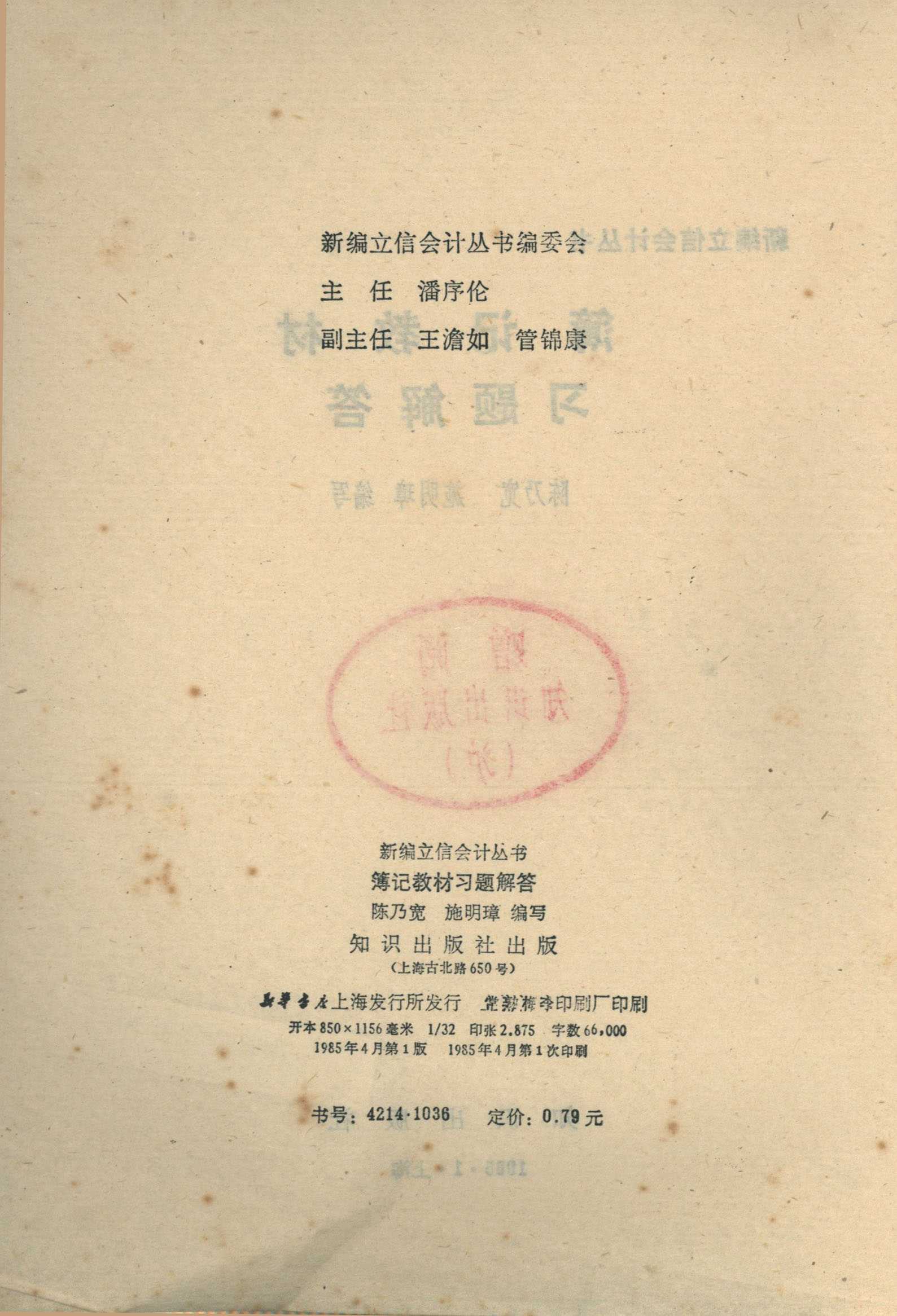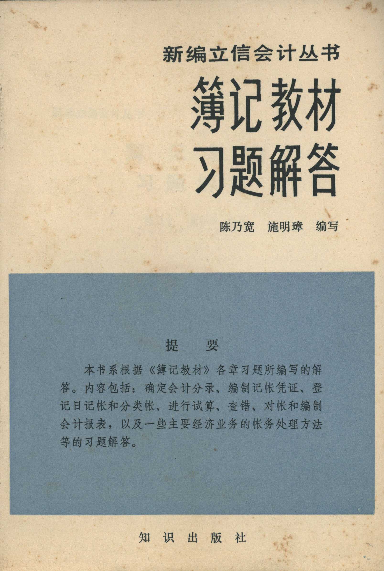 新编立信会计丛书 簿记教材习题解答 知识出版社 陈乃宽 施明璋编写 主任潘序伦 副主任王澹如 管锦康3本