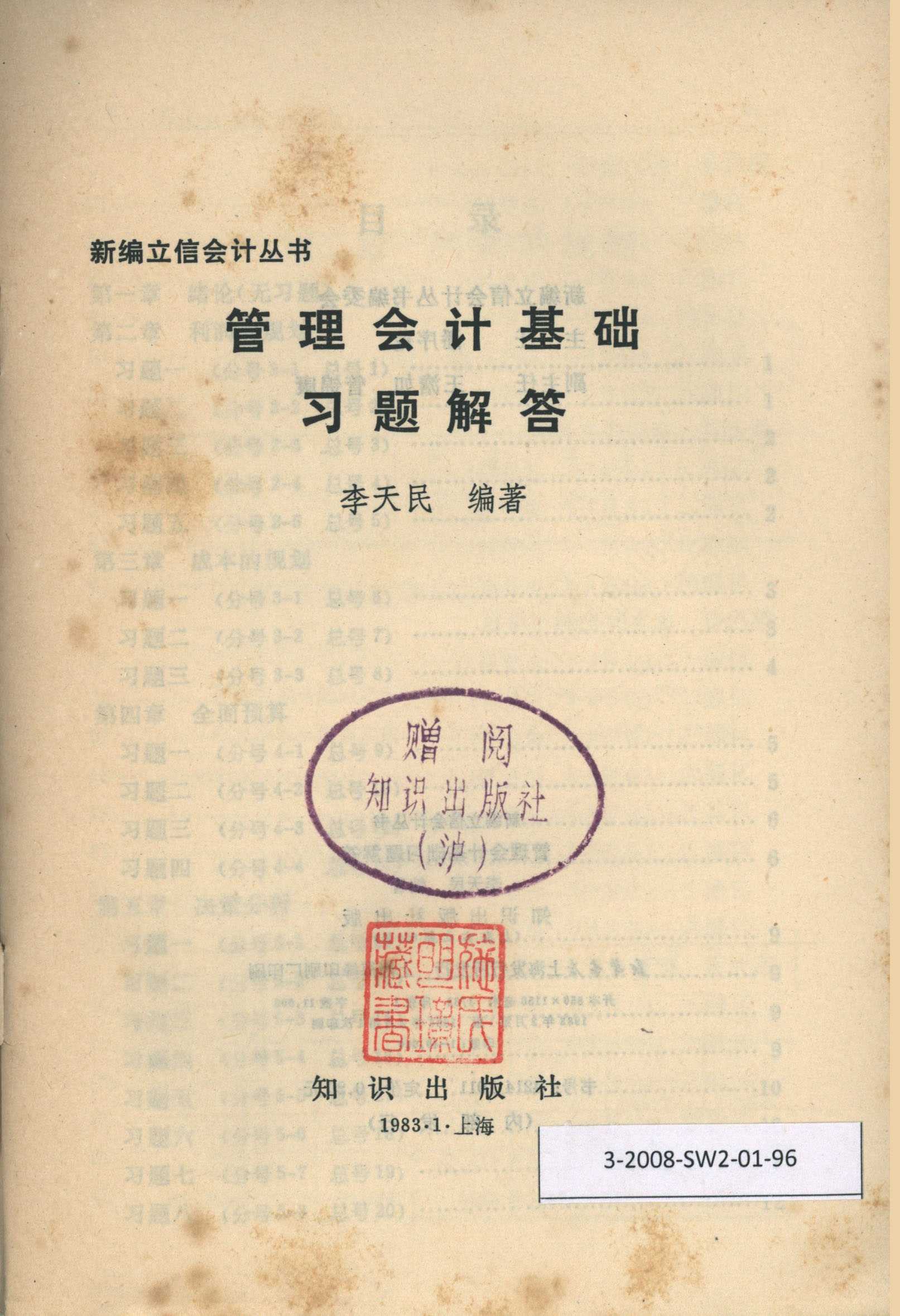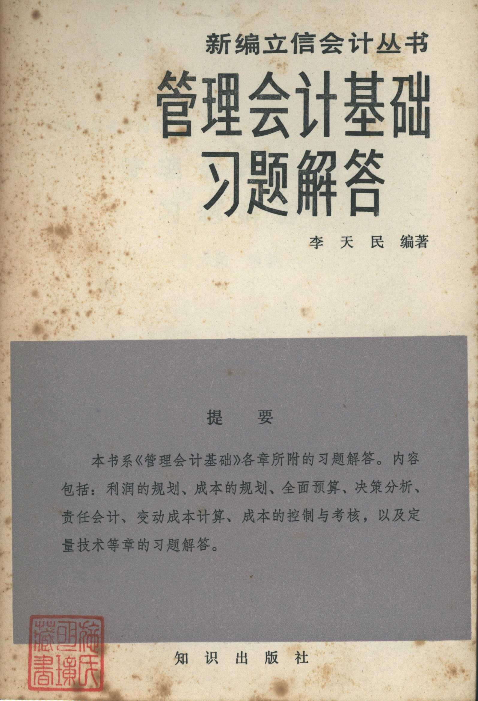 新编立信会计丛书 管理会计基础习题解答 知识出版社 李天民编著 主任潘序伦 副主任王澹如 管锦康