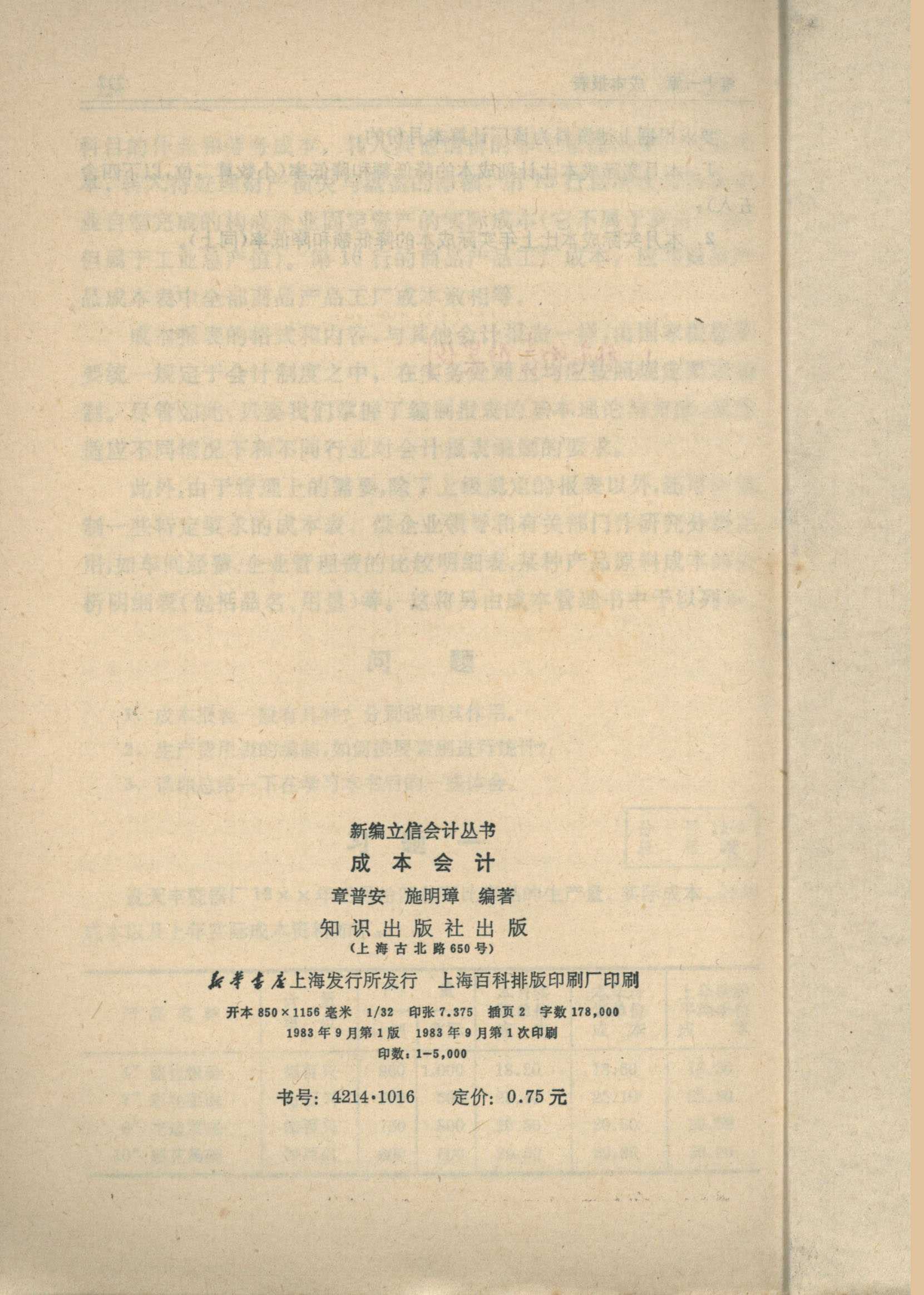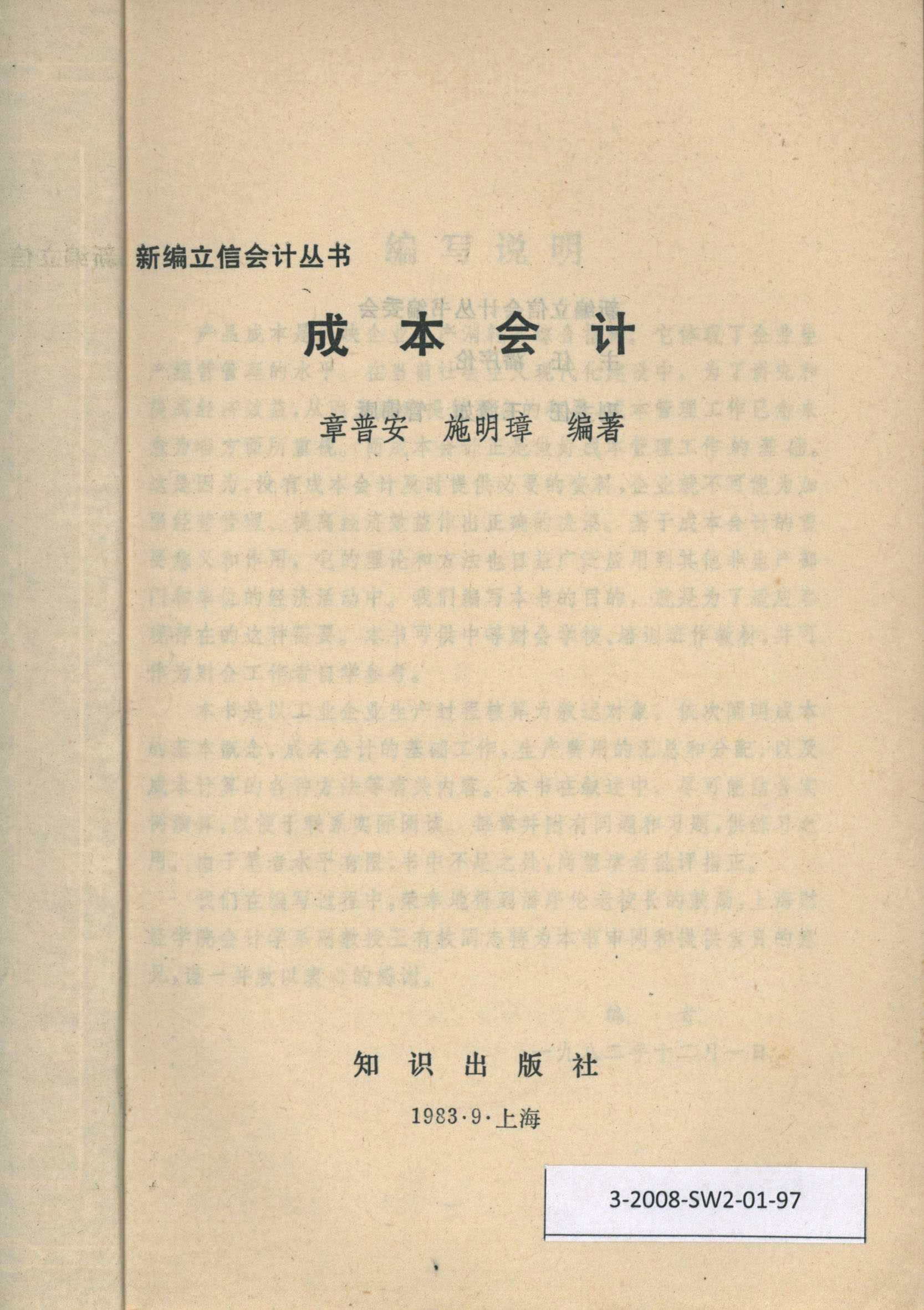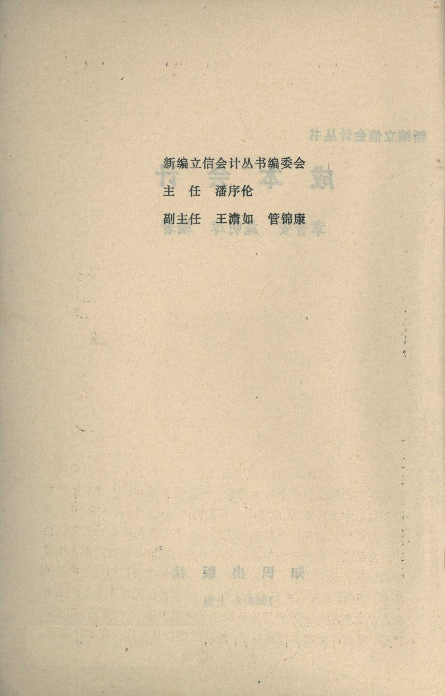 新编立信会计丛书 成本会计 章普安 施明璋 编著 知识出版社 主任 潘序伦 副主任 王澹如 管锦康