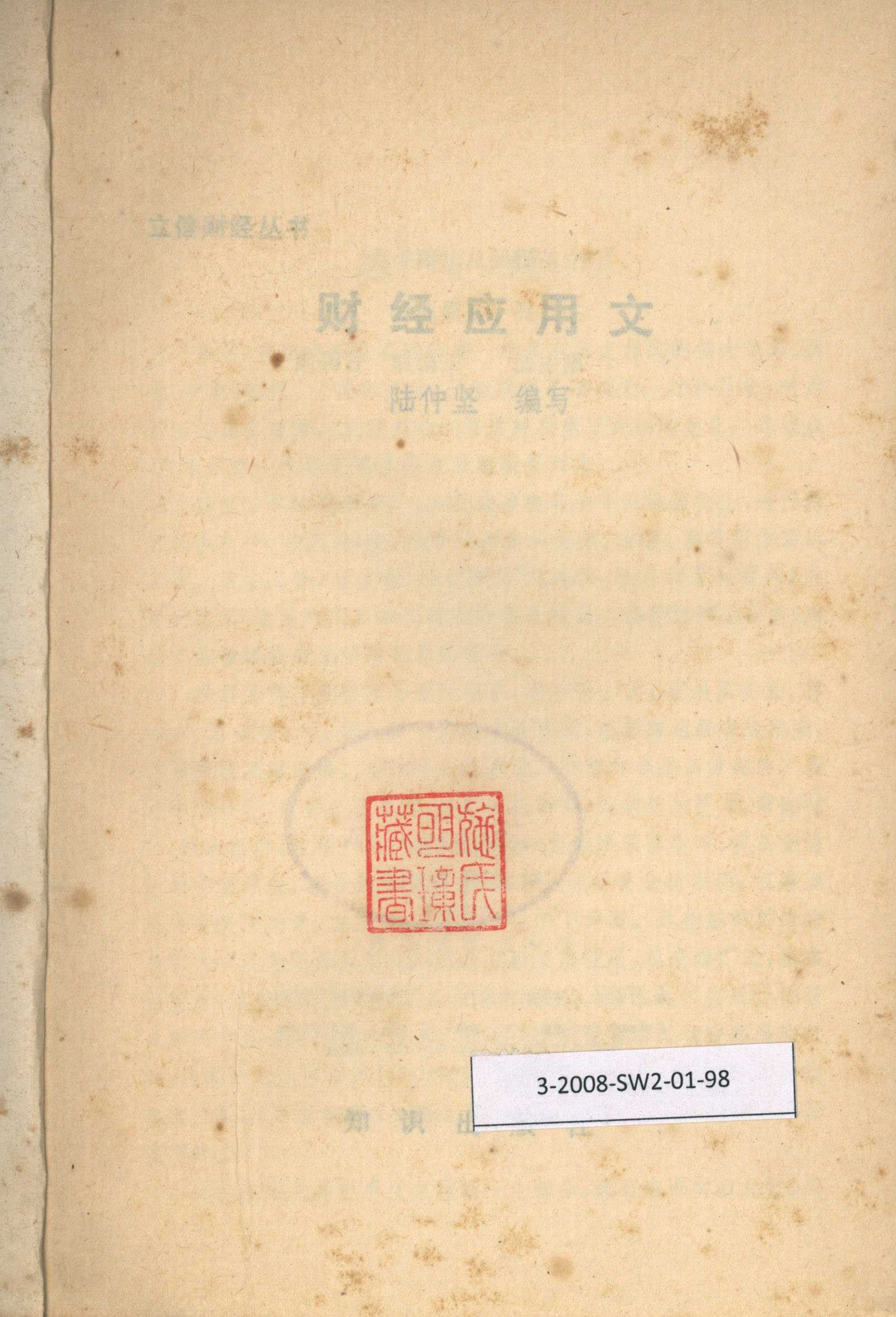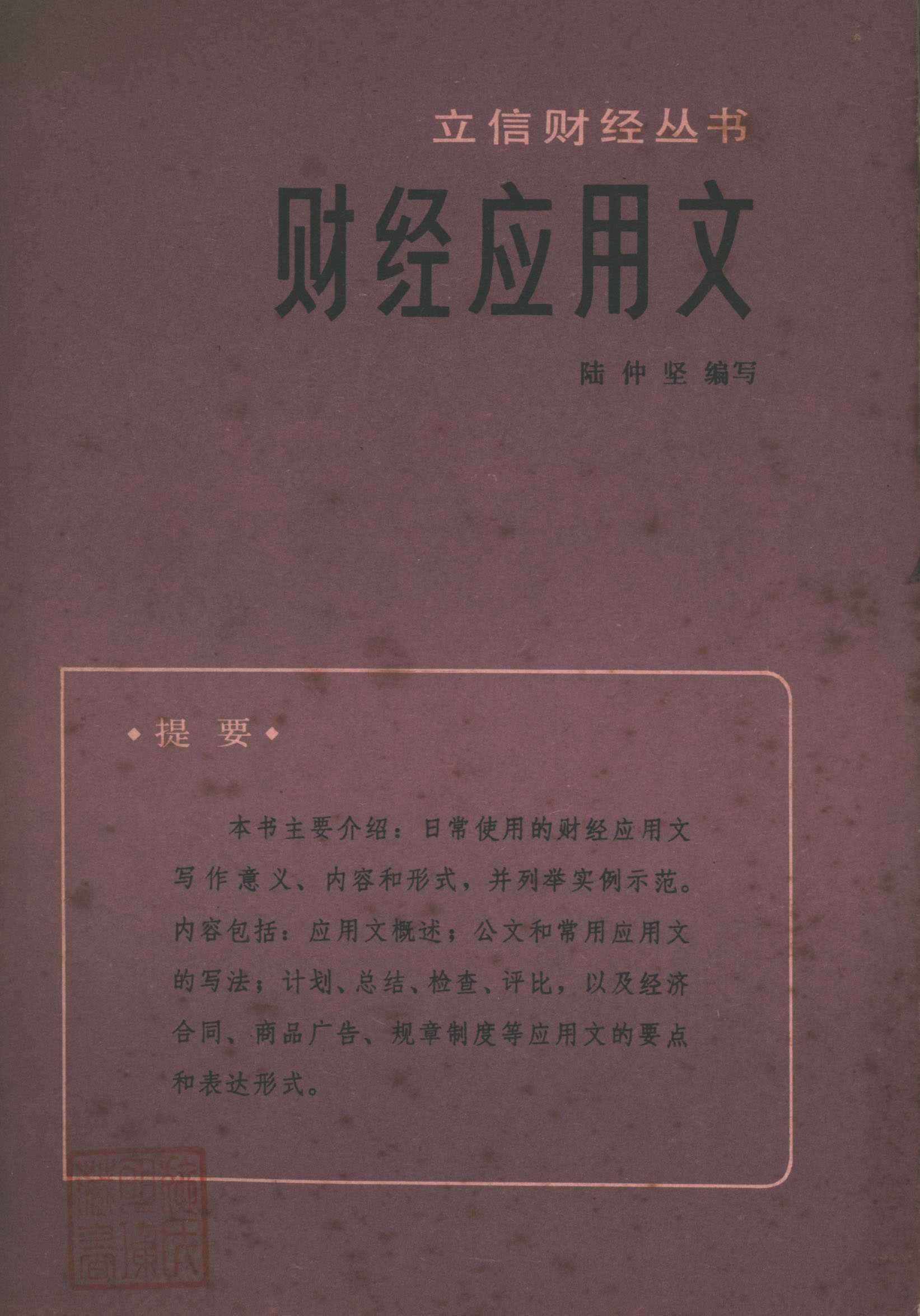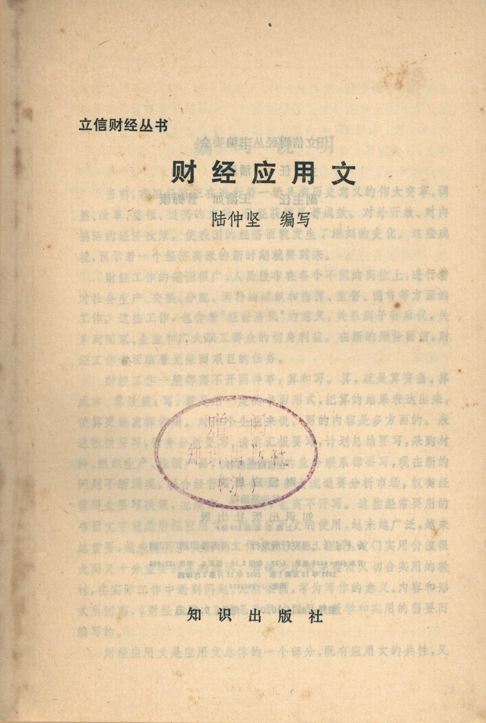 立信财经丛书 财经应用文 知识出版社 陆仲坚编写 主任潘序伦 副主任王澹如 管锦康