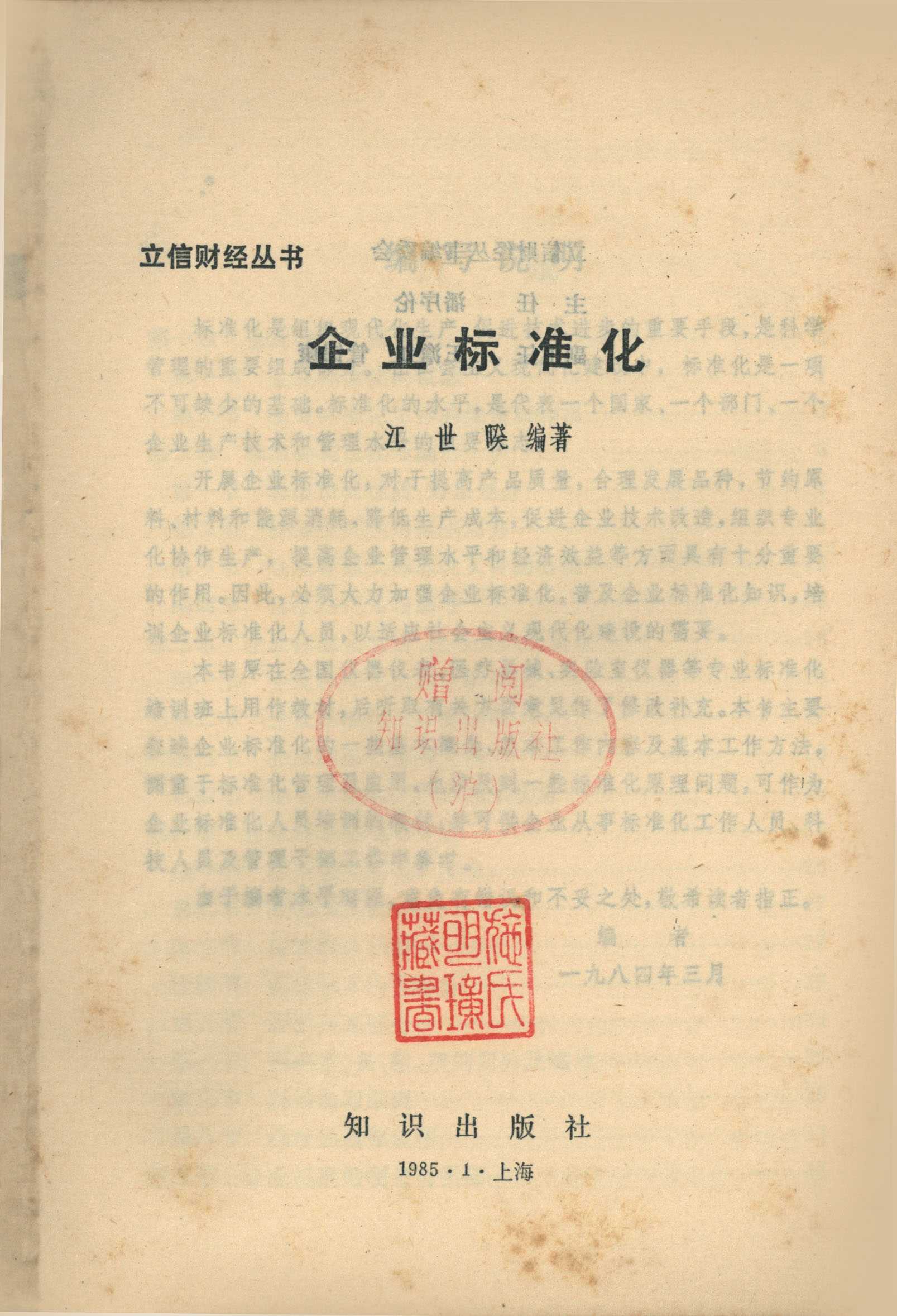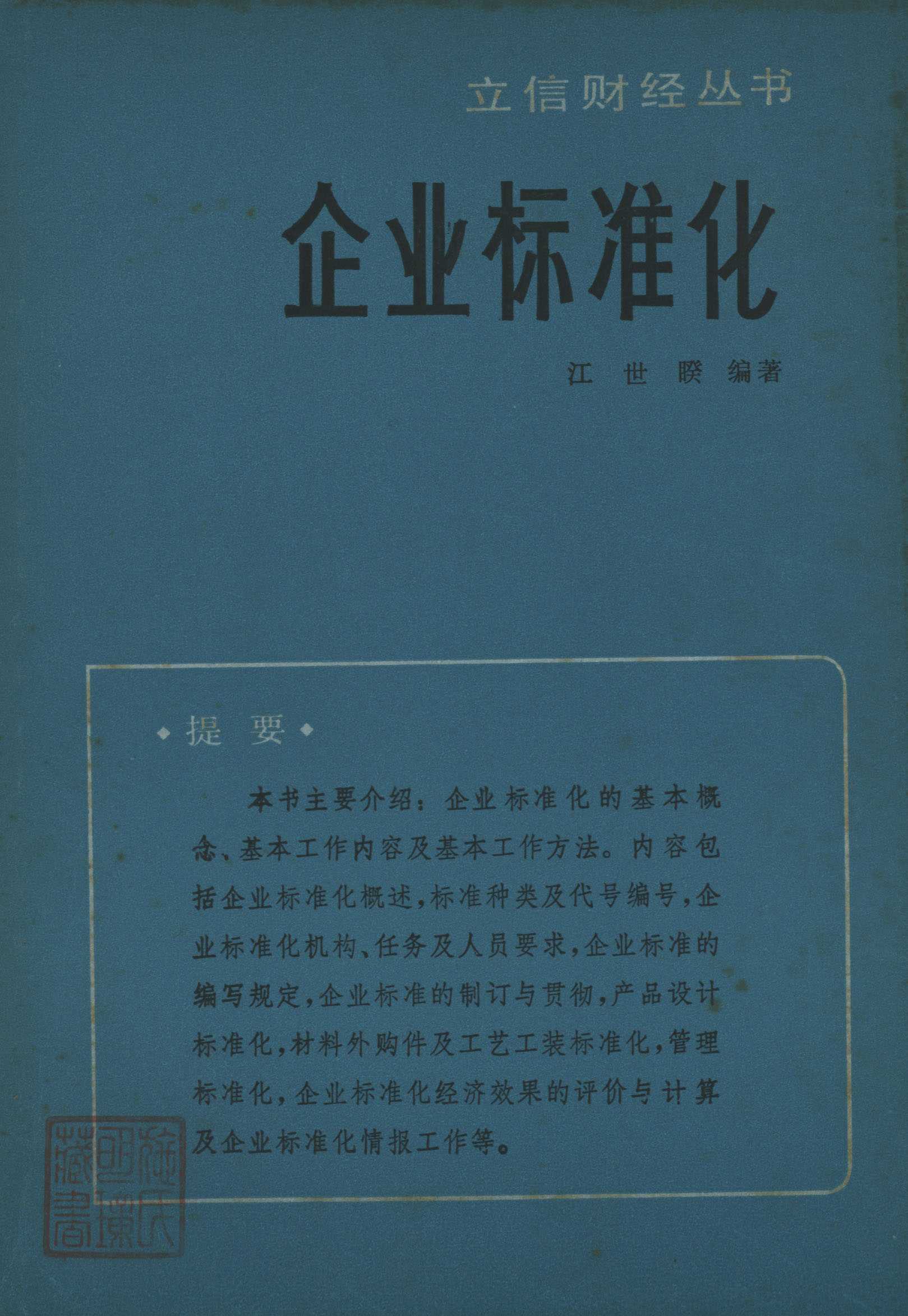立信财经丛书 企业标准化 知识出版社 江世睽编著 主任潘序伦 副主任王澹如 管锦康