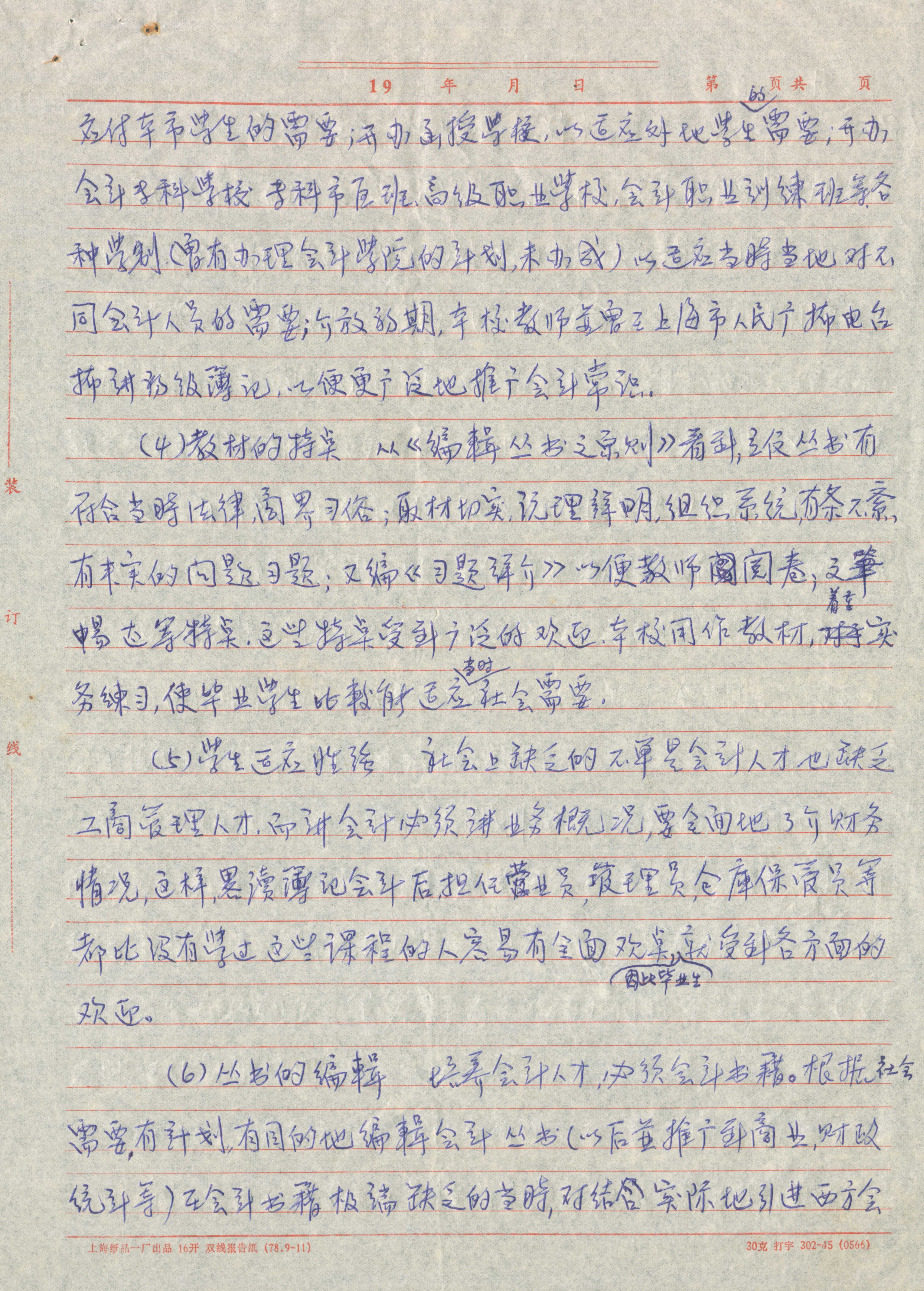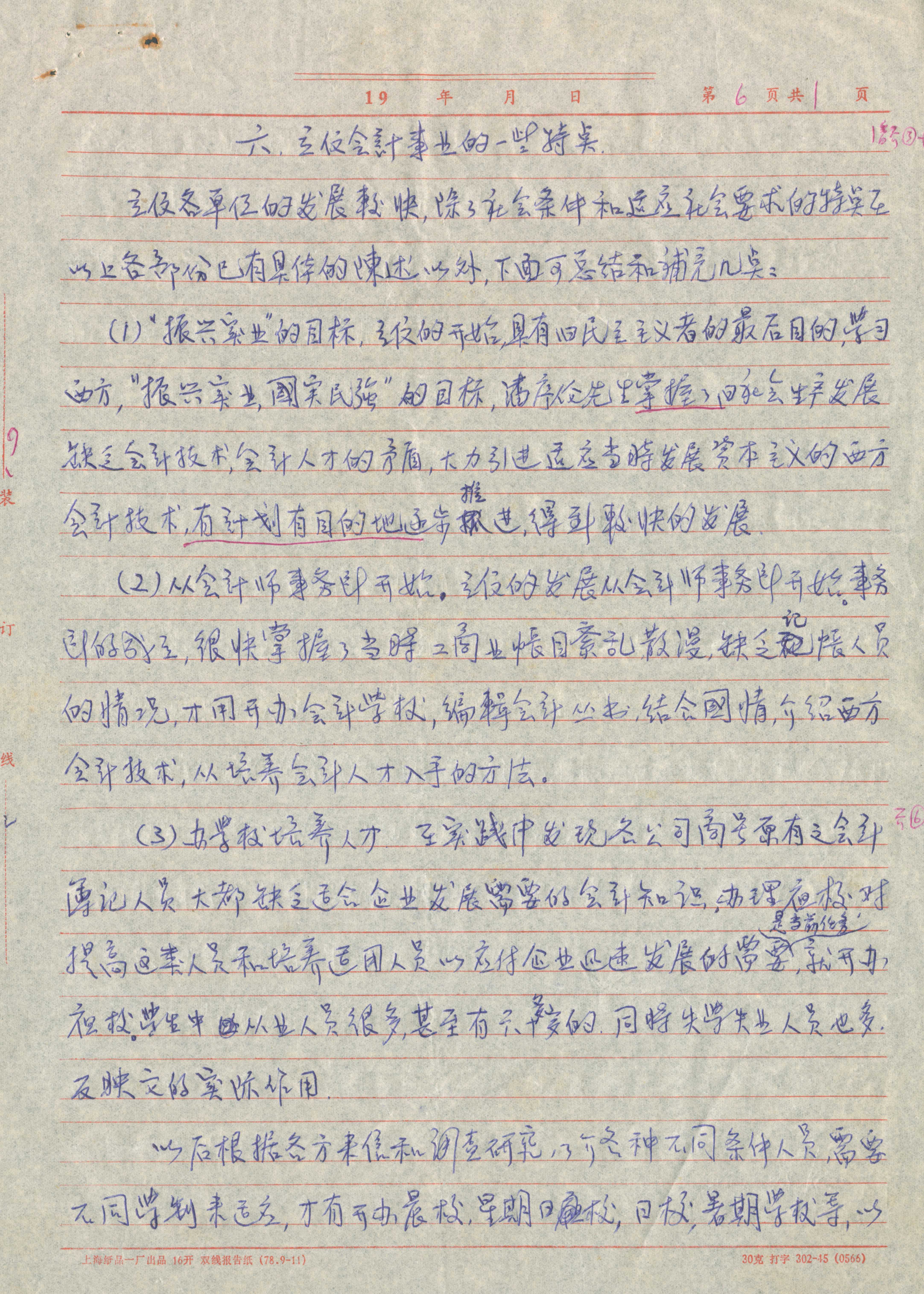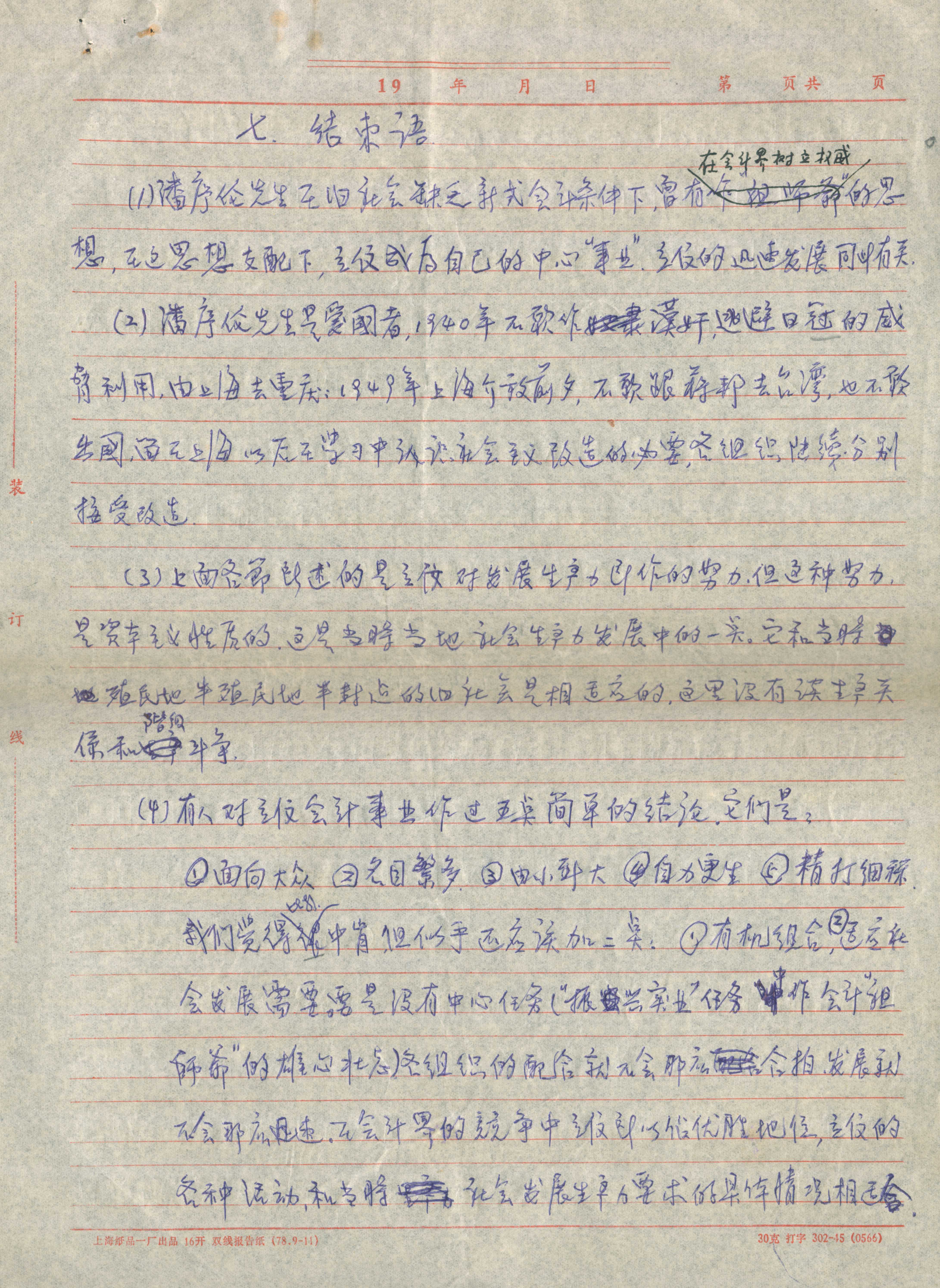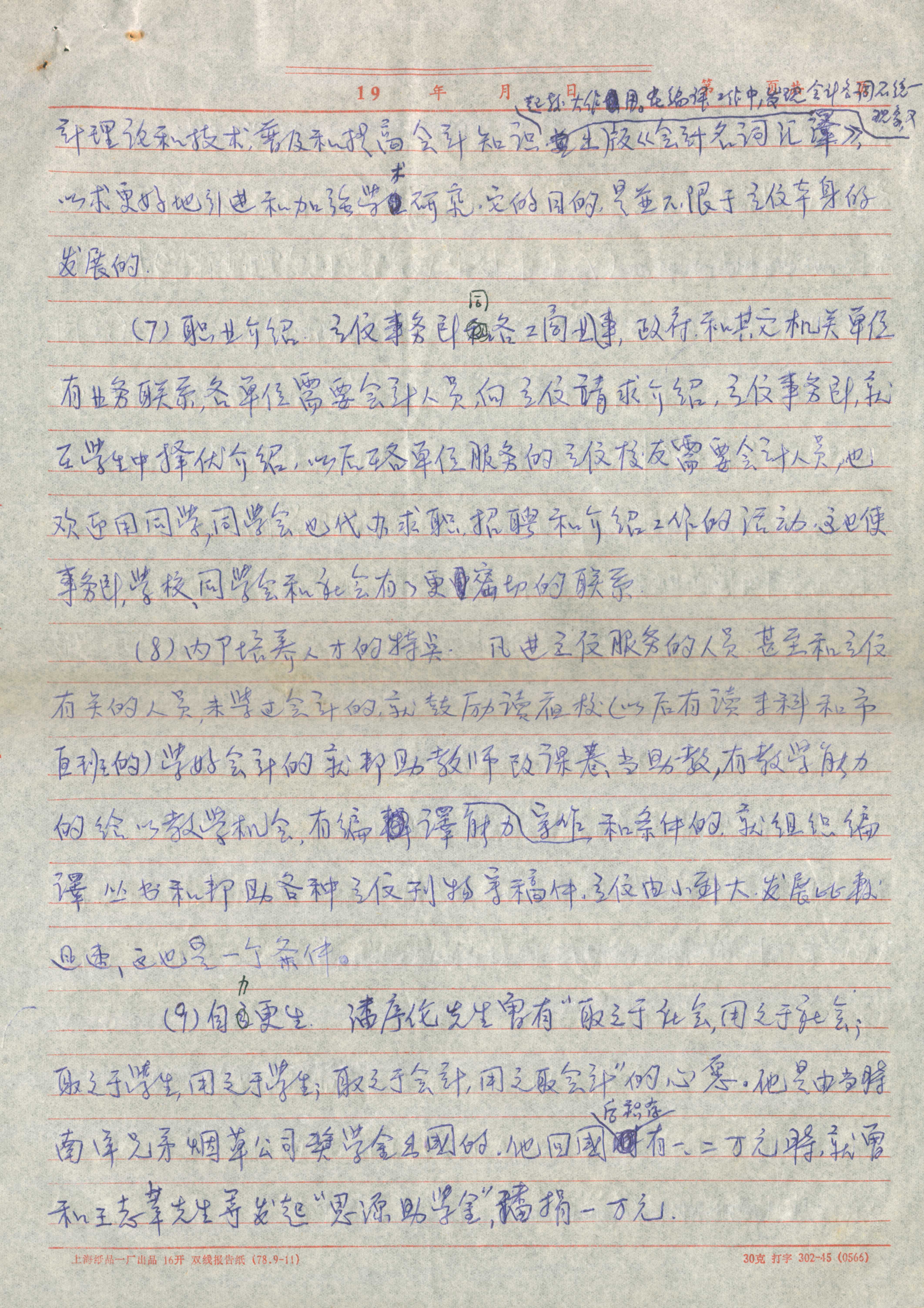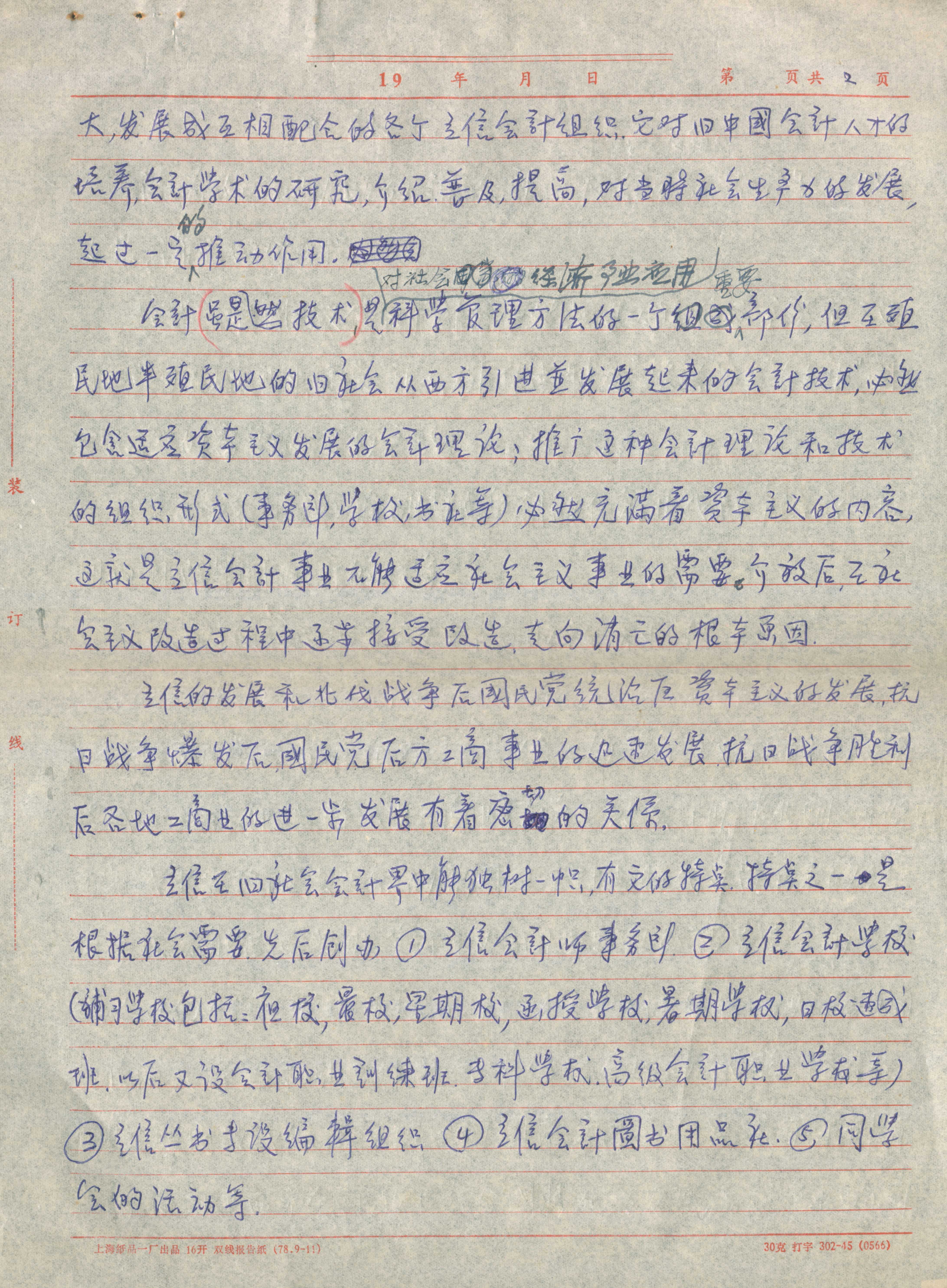 潘序伦练习简化字草稿共19张