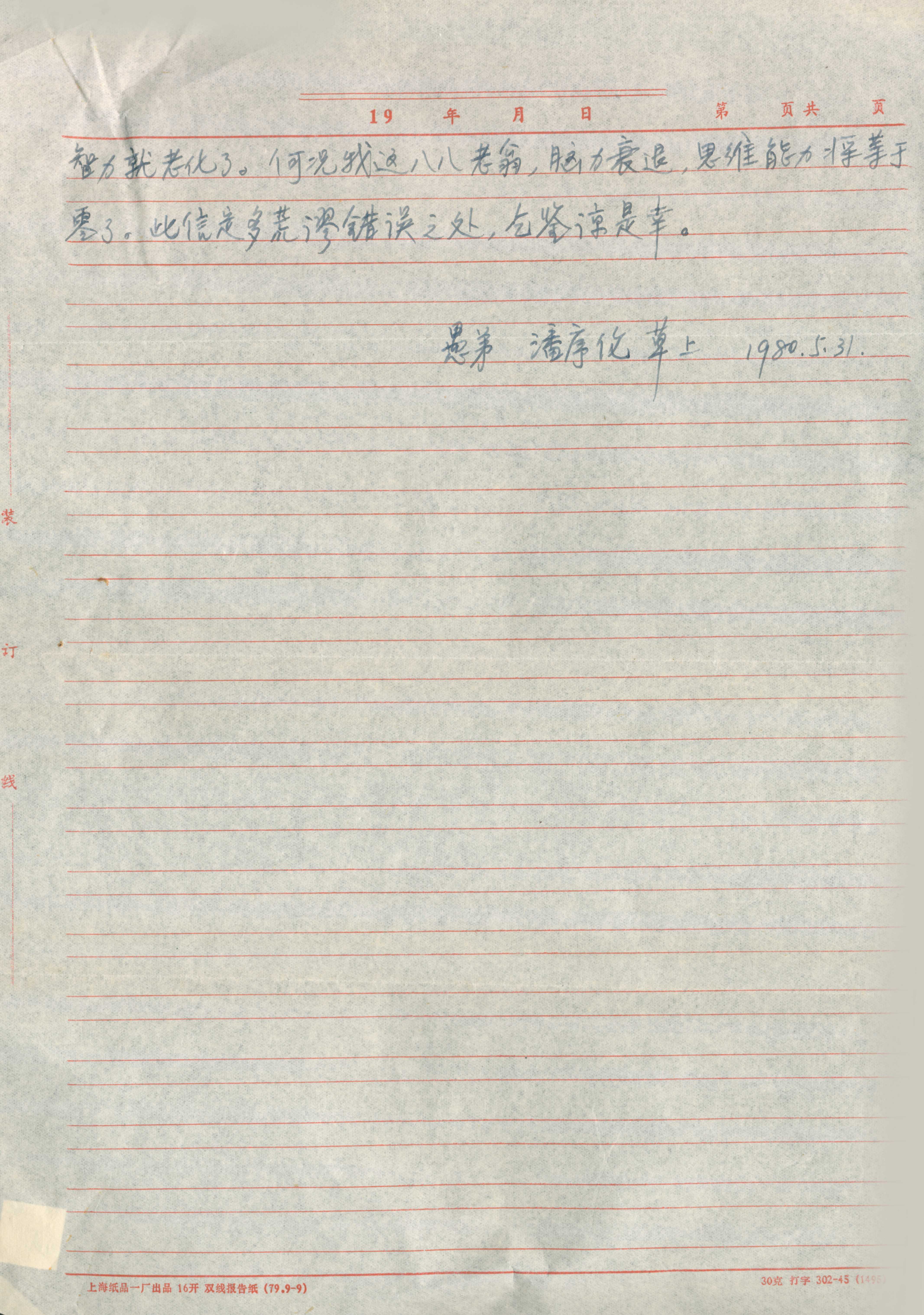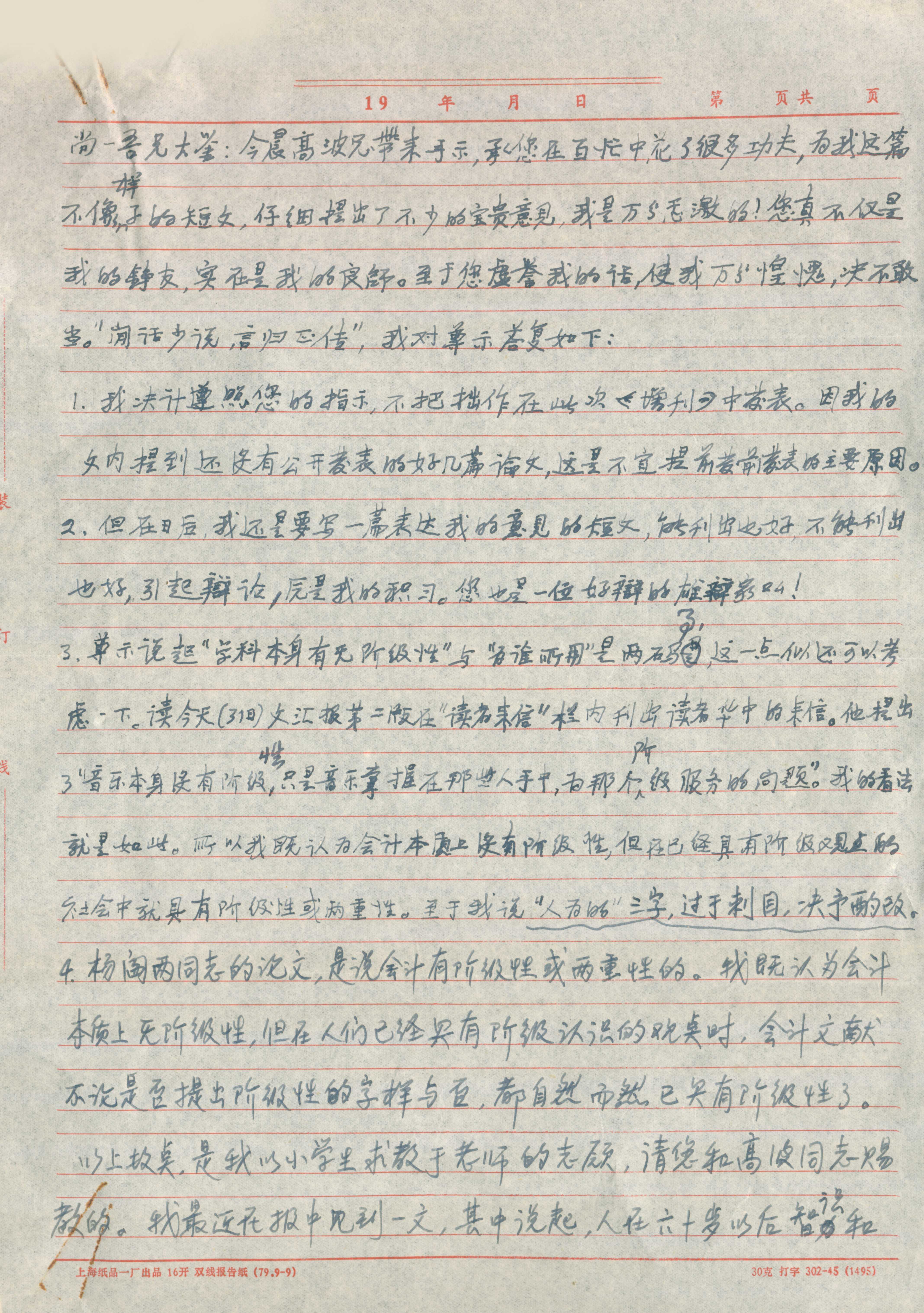 香港立信同学吴文鼎给潘序伦的信及潘老对于信件的说明