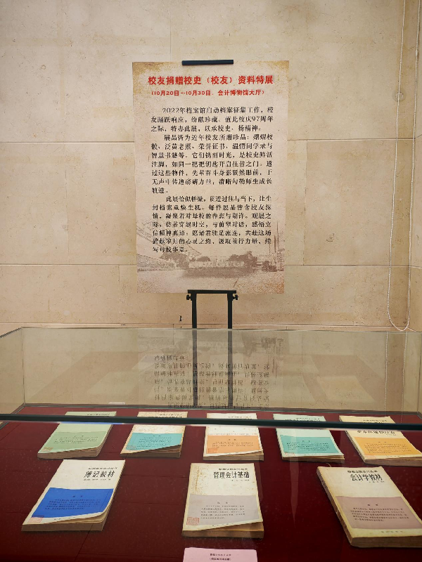 10月20日,一场以“校友捐赠校史(校友)资料”为主题的喜迎97周年校庆展览在中国会计博物馆一楼大厅举办,主要展出近几年部分校友捐赠的各类史料、实物,活动至10月30日结束。